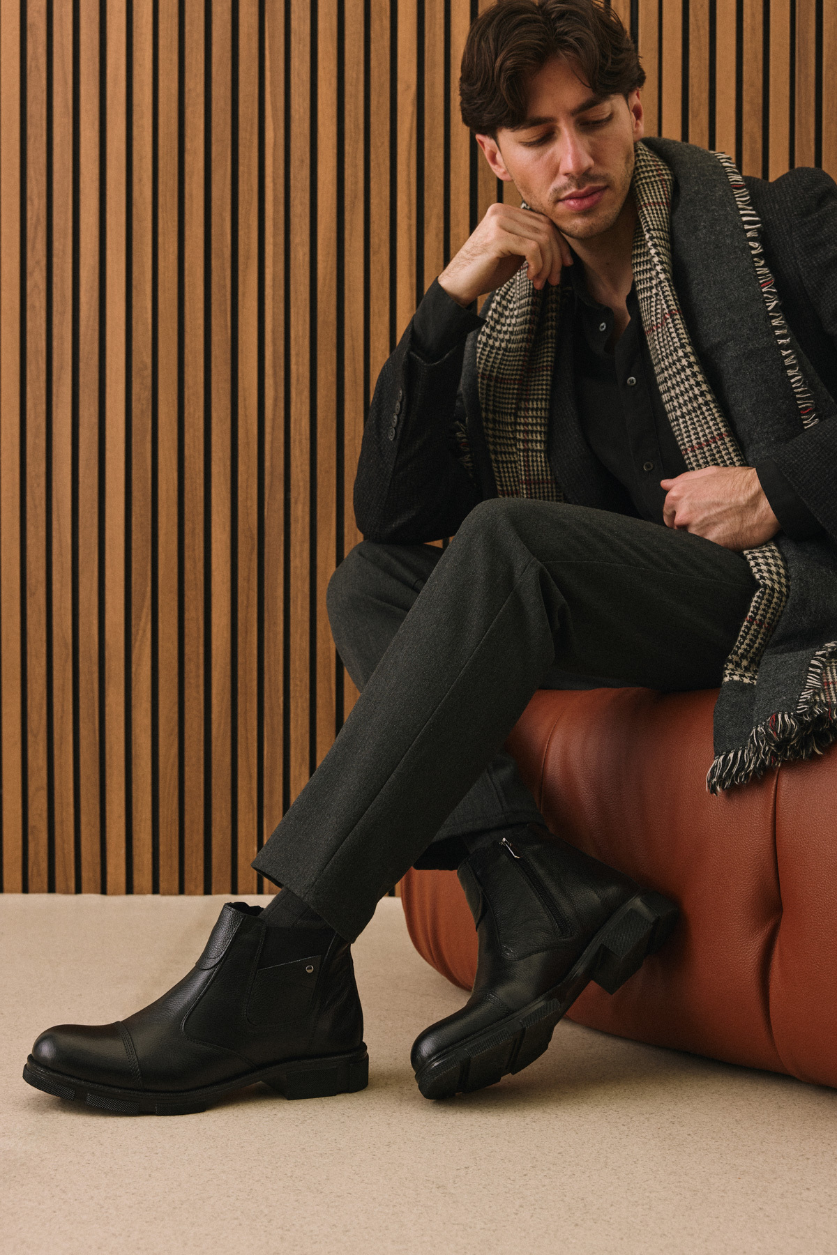 , Erkek Hakiki Deri Kürklü Bot 153999Z044 Siyah , Erkek Hakiki Deri Kürklü Bot 153999Z044 Siyah 44