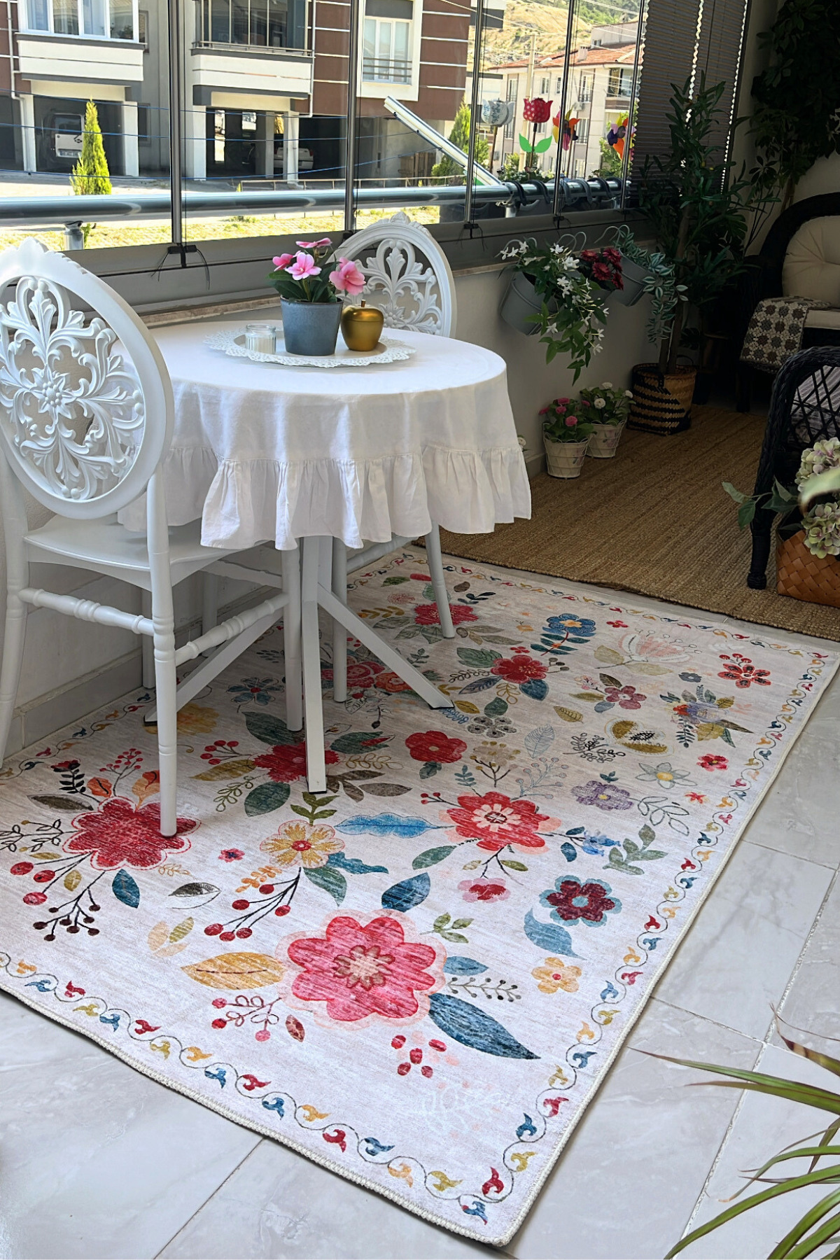 Daisy Beyaz Renkli Bohem Halı Makinede Yıkanabilen Çiçekli Dokuma Şönil Halı Vintage Ev Oda Halısı Daisy Beyaz Renkli Bohem Halı Makinede Yıkanabilen Çiçekli Dokuma Şönil Halı Vintage Ev Oda Halısı TYCLDAISYM 160 x 230
