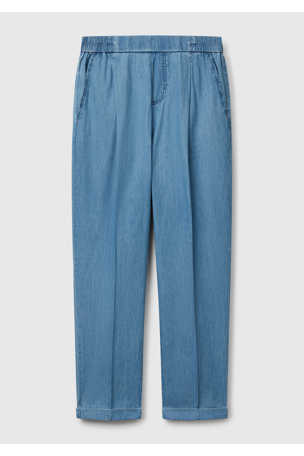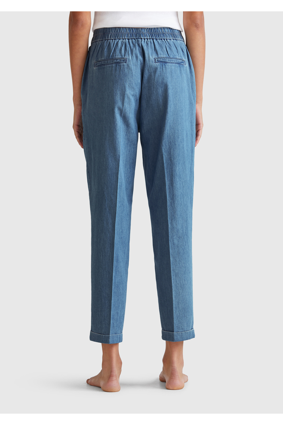 Kadın Açık Mavi %100 Koton Beli Lastikli Şamre Pantolon Kadın Açık Mavi %100 Koton Beli Lastikli Şamre Pantolon 125P4DHJDF079 XL