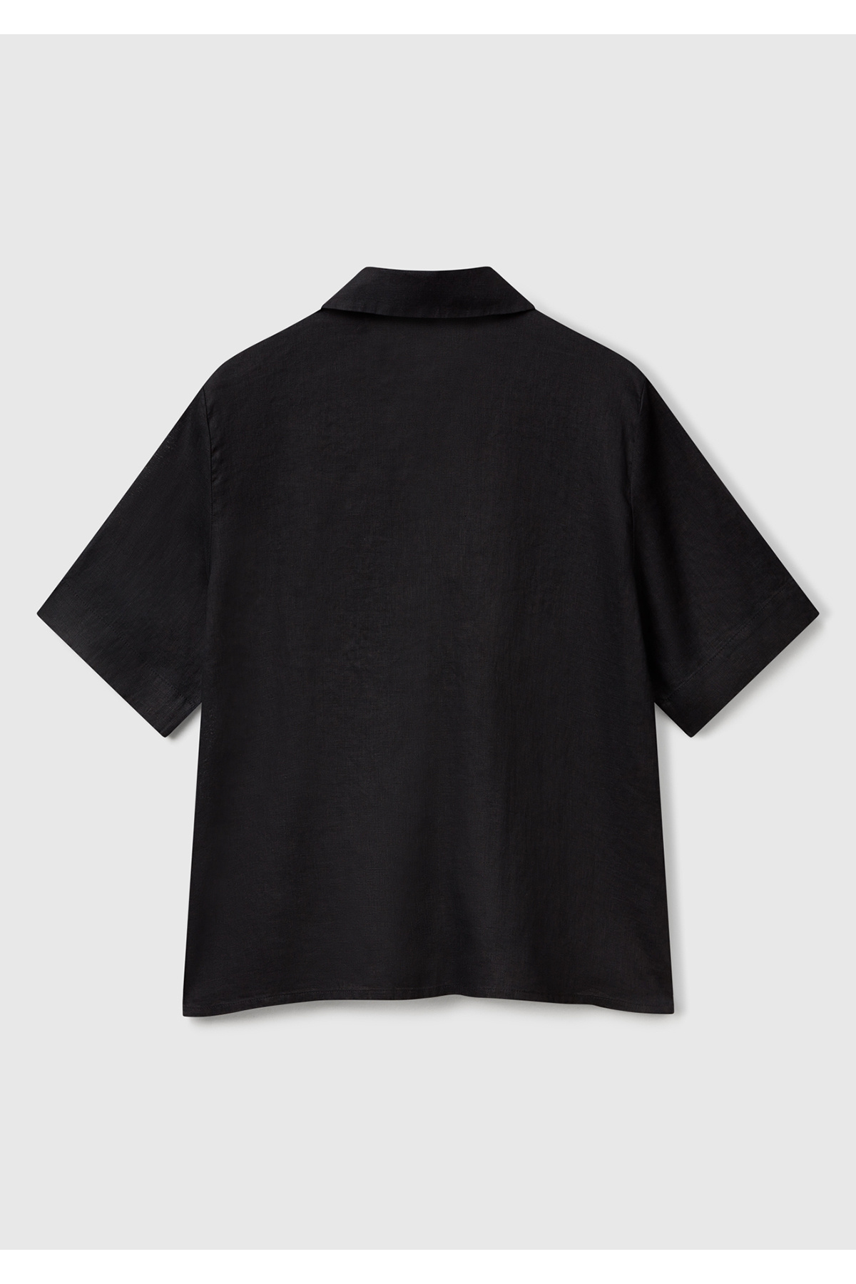 Kadın Siyah %100 Keten Relax Fit V Gömlek Yakalı Kısa Kollu Bluz Kadın Siyah %100 Keten Relax Fit V Gömlek Yakalı Kısa Kollu Bluz 125P5BMLDQ0B6 XXS-XS