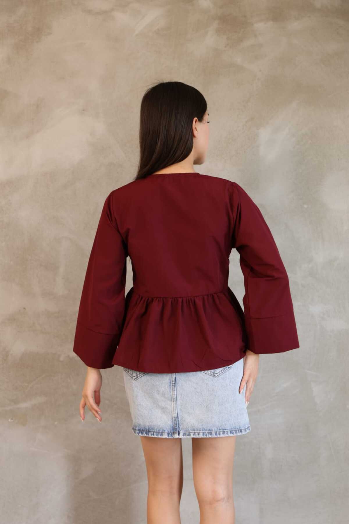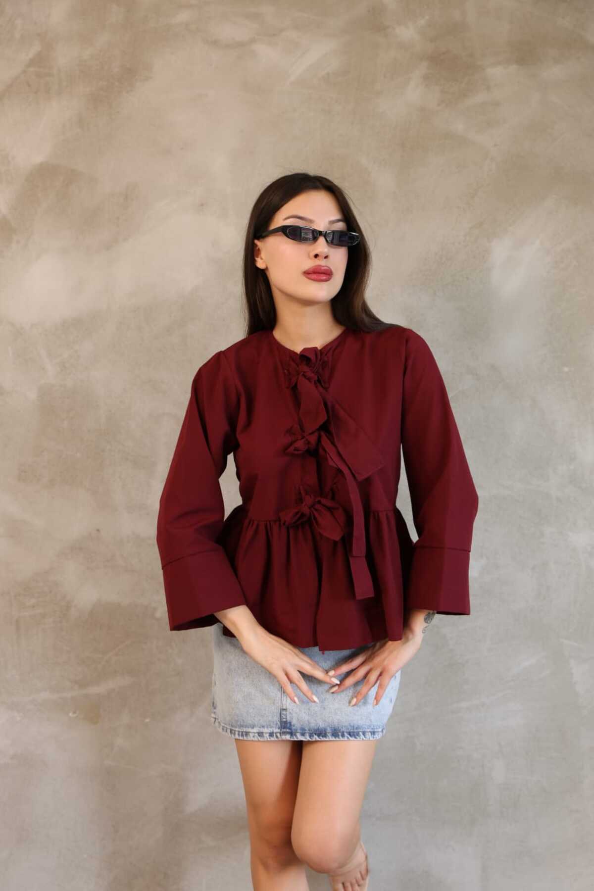 Poplin Kumaş Fiyonklu Bebe Yaka Bluz Poplin Kumaş Fiyonklu Bebe Yaka Bluz üçkatbağlamali L