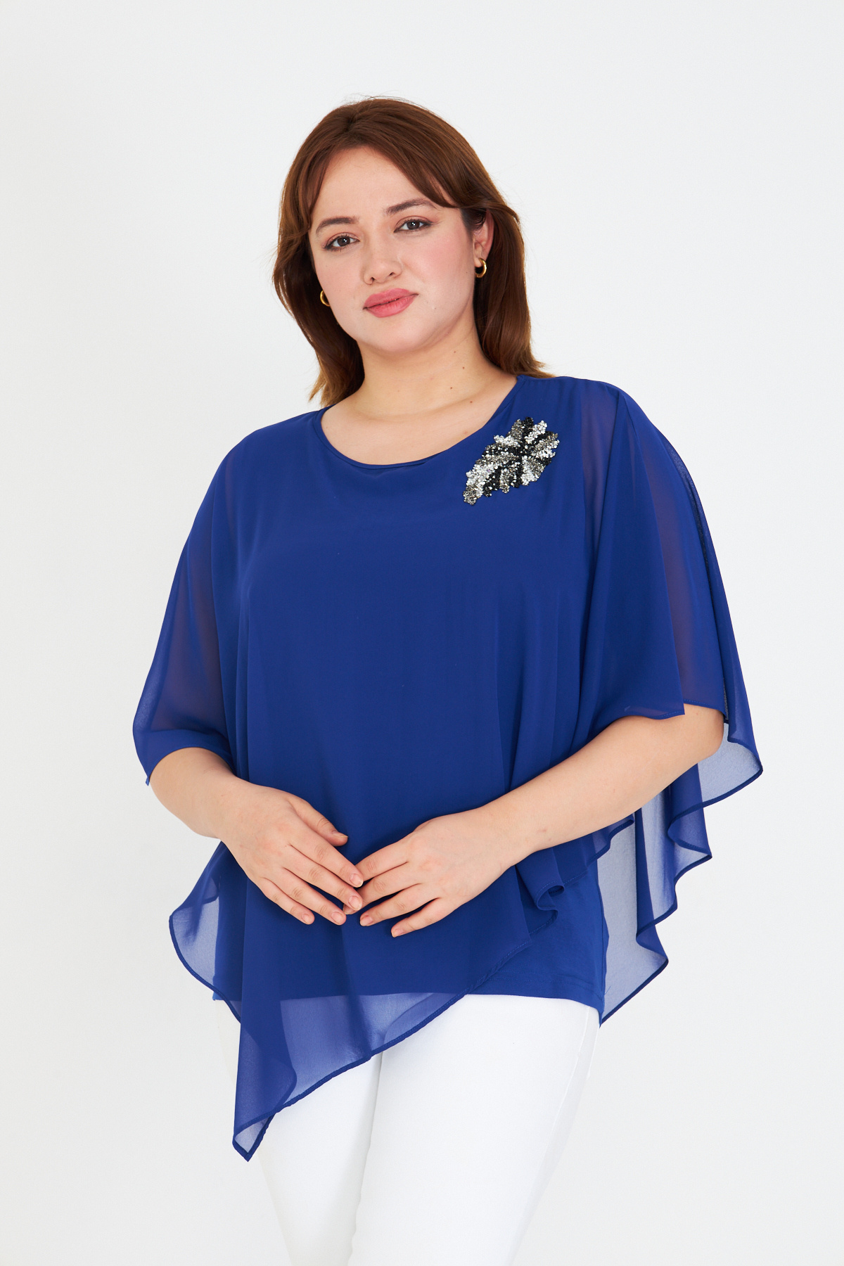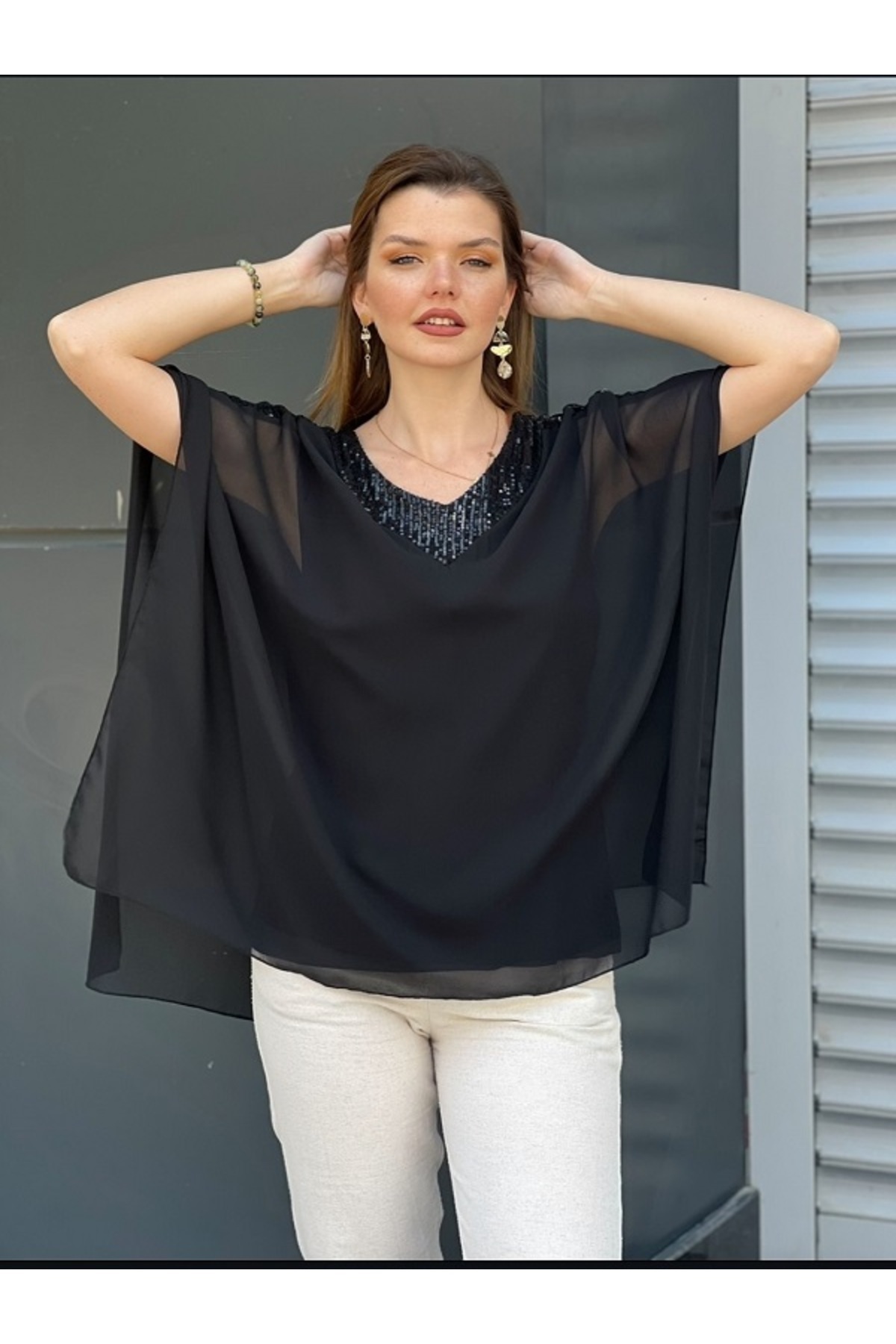 Kadın Siyah Büyük Beden Şifon Bluz M1-2327 Kadın Siyah Büyük Beden Şifon Bluz M1-2327 52-54