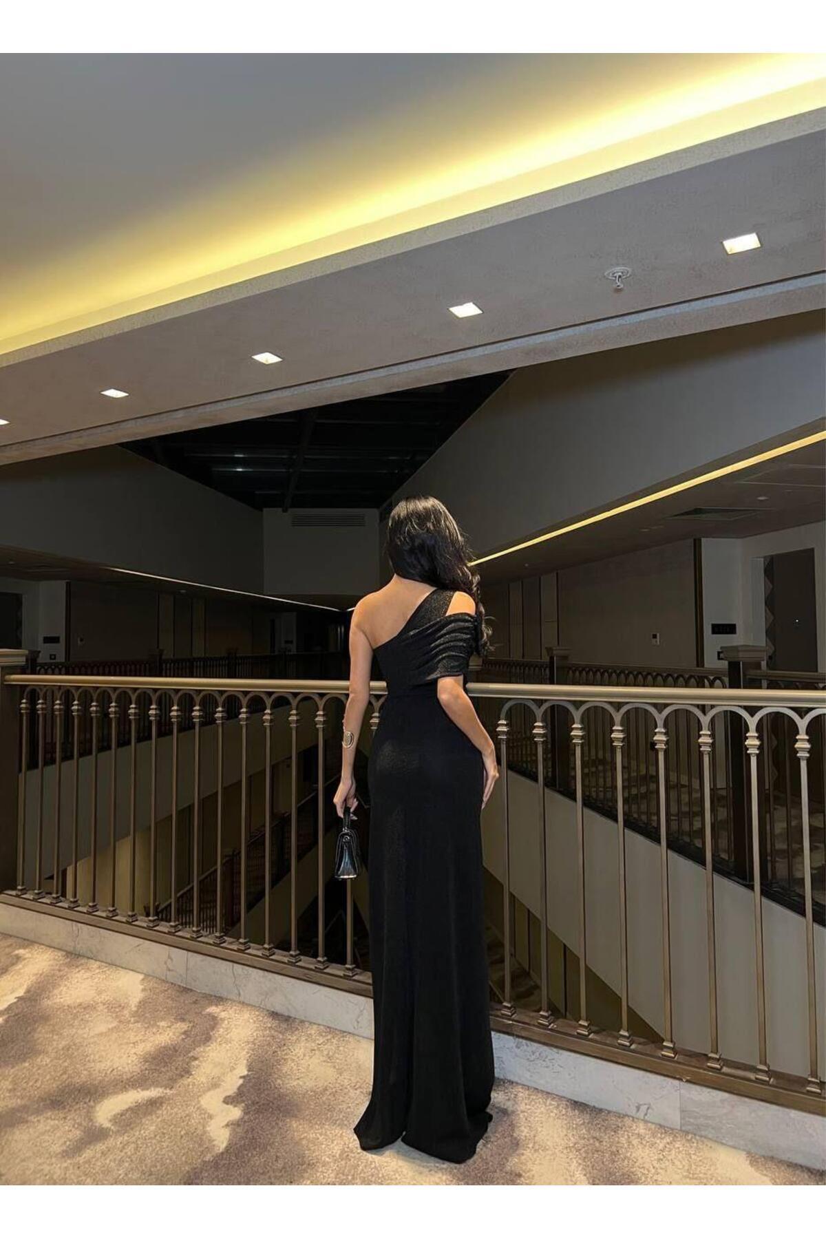 Tek Omuz Yırtmaçlı Flowers Kumaş Elbise Siyah 583203 Tek Omuz Yırtmaçlı Flowers Kumaş Elbise Siyah 583203 XL