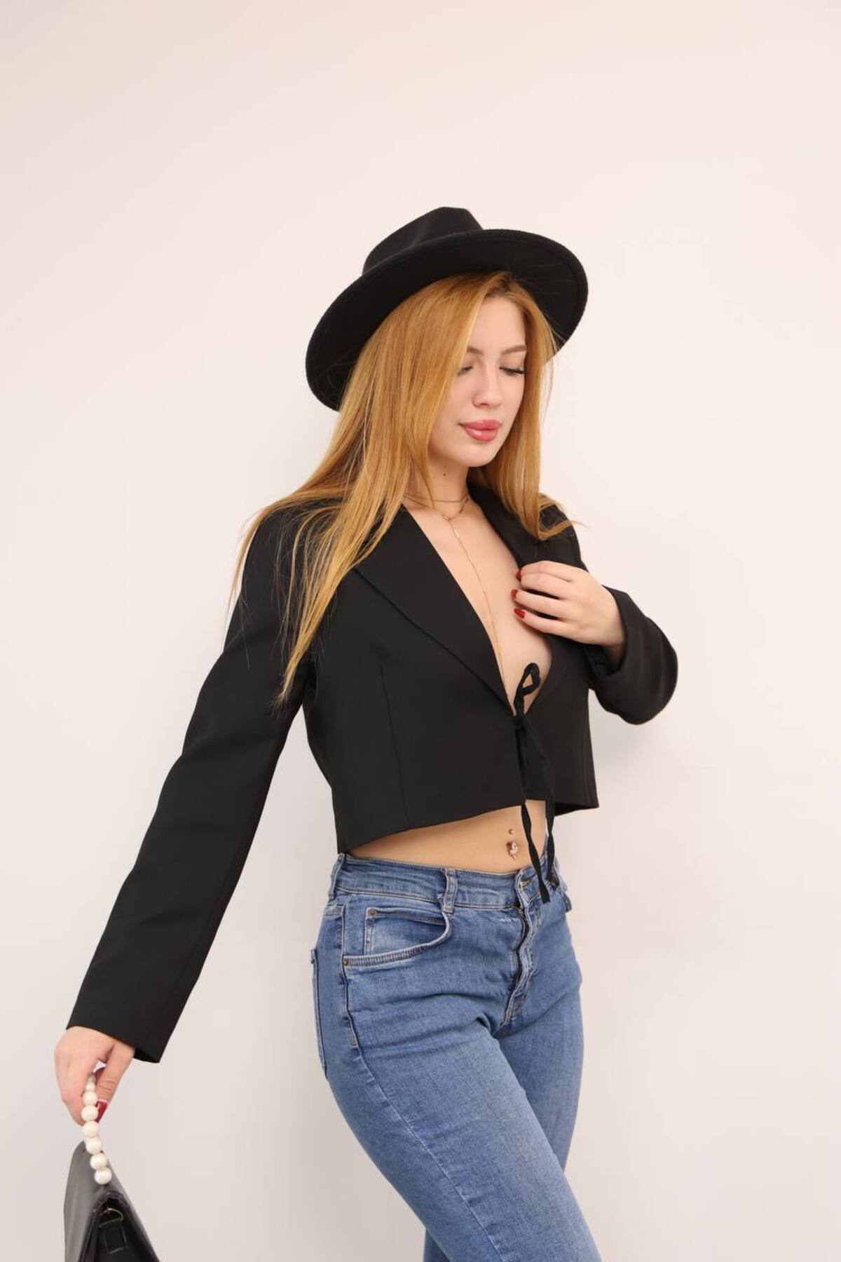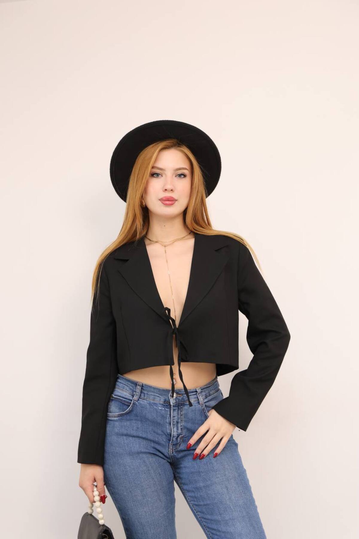 Kadın Rahat Kalıp Önden Bağlama Detaylı Bağcıklı Crop Ceket Kadın Rahat Kalıp Önden Bağlama Detaylı Bağcıklı Crop Ceket gmyl-cropceket L