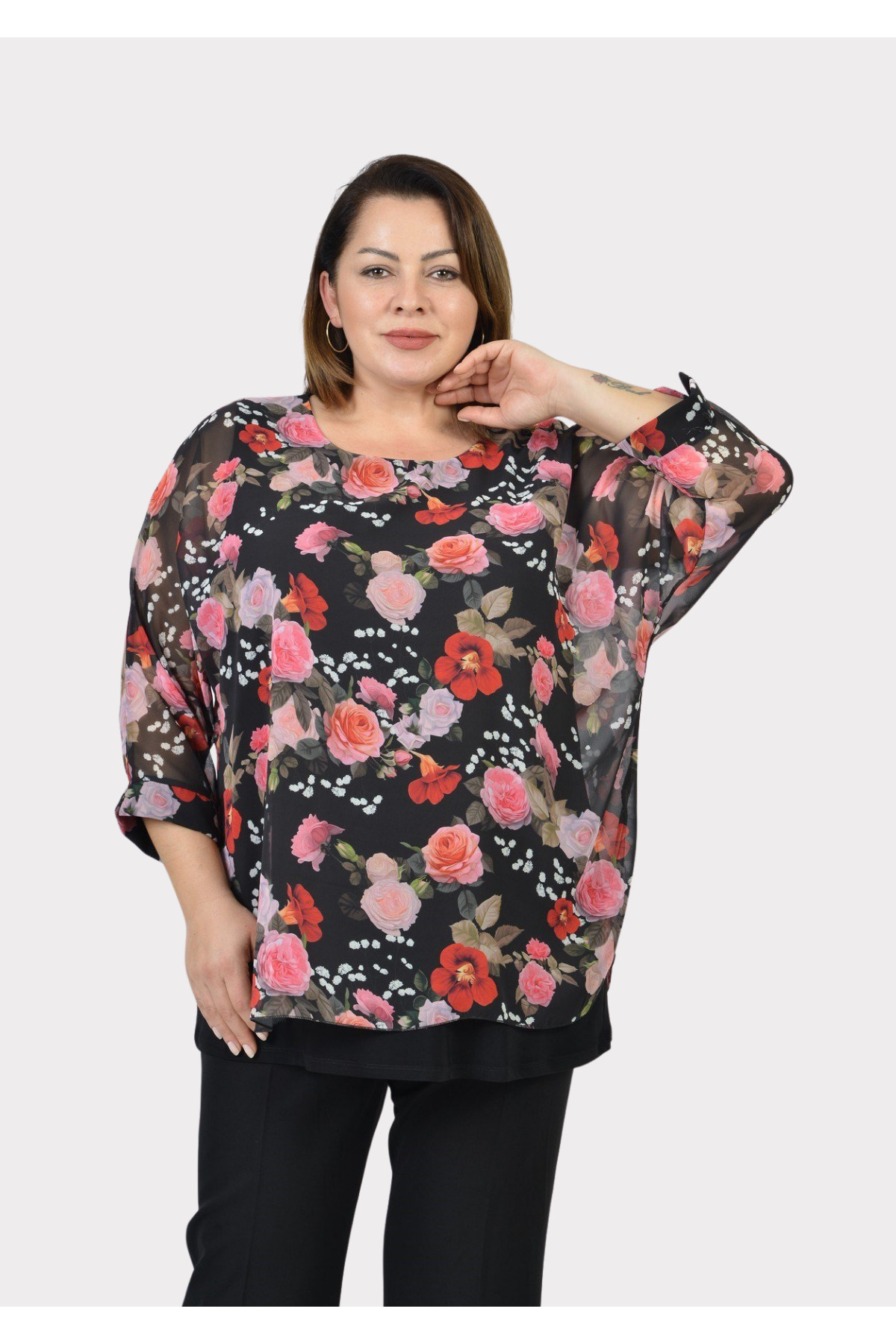 Büyük Beden Kırmızı Çiçekli Şifon Abiye Bluz Büyük Beden Kırmızı Çiçekli Şifon Abiye Bluz 758 52