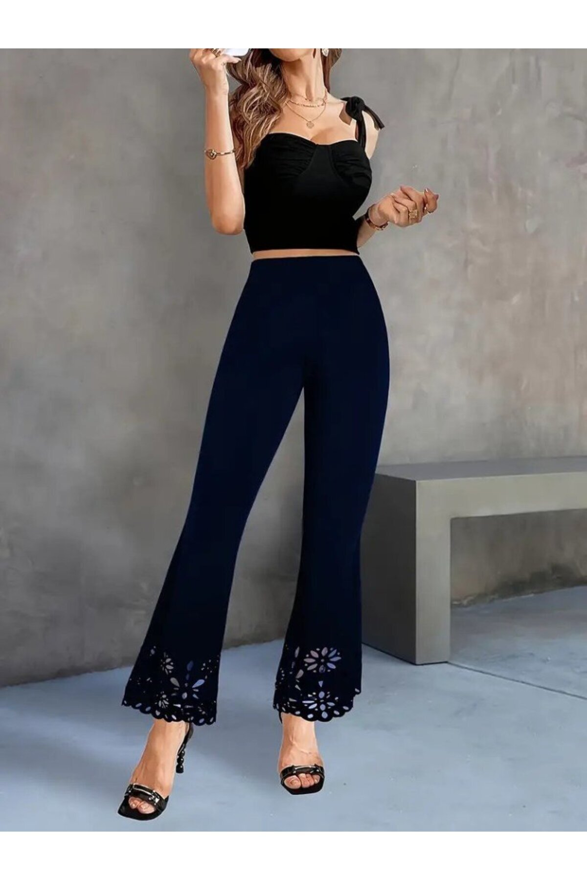 Kadın Yüksek Bel Paçaya Doğru Genişleyen Lazer çiçek Kesim Detaylı Ithal Krep Pantolon Kadın Yüksek Bel Paçaya Doğru Genişleyen Lazer çiçek Kesim Detaylı Ithal Krep Pantolon SNA-6814967e26d15 2XL-3XL