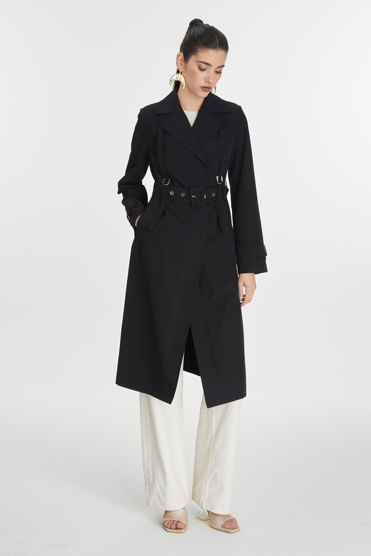 Kruvaze Yaka Apolet Detaylı Kemerli Siyah Trençkot 13758 Kruvaze Yaka Apolet Detaylı Kemerli Siyah Trençkot 13758 Z25YB13758TR100001 42