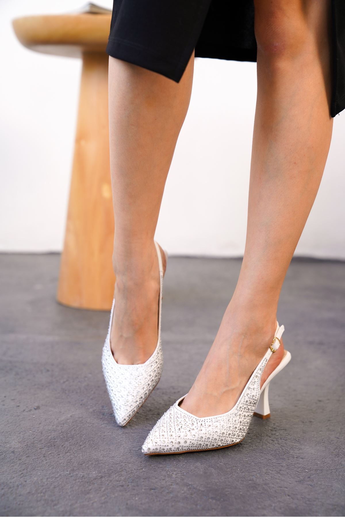 Kadın Ricors Taşlı Topuklu Ayakkabı - Beyaz Kadın Ricors Taşlı Topuklu Ayakkabı - Beyaz SVK0003 40