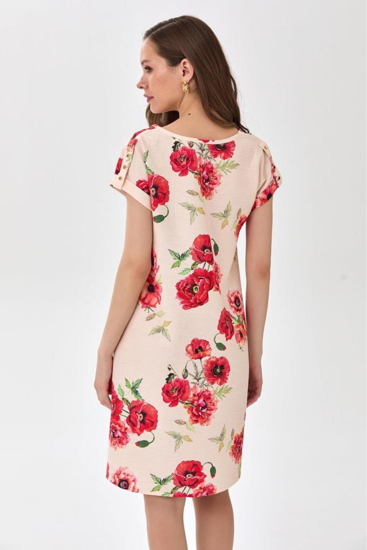 V Yaka Düşük Kol Desenli Elbise 025-4043 V Yaka Düşük Kol Desenli Elbise 025-4043 48