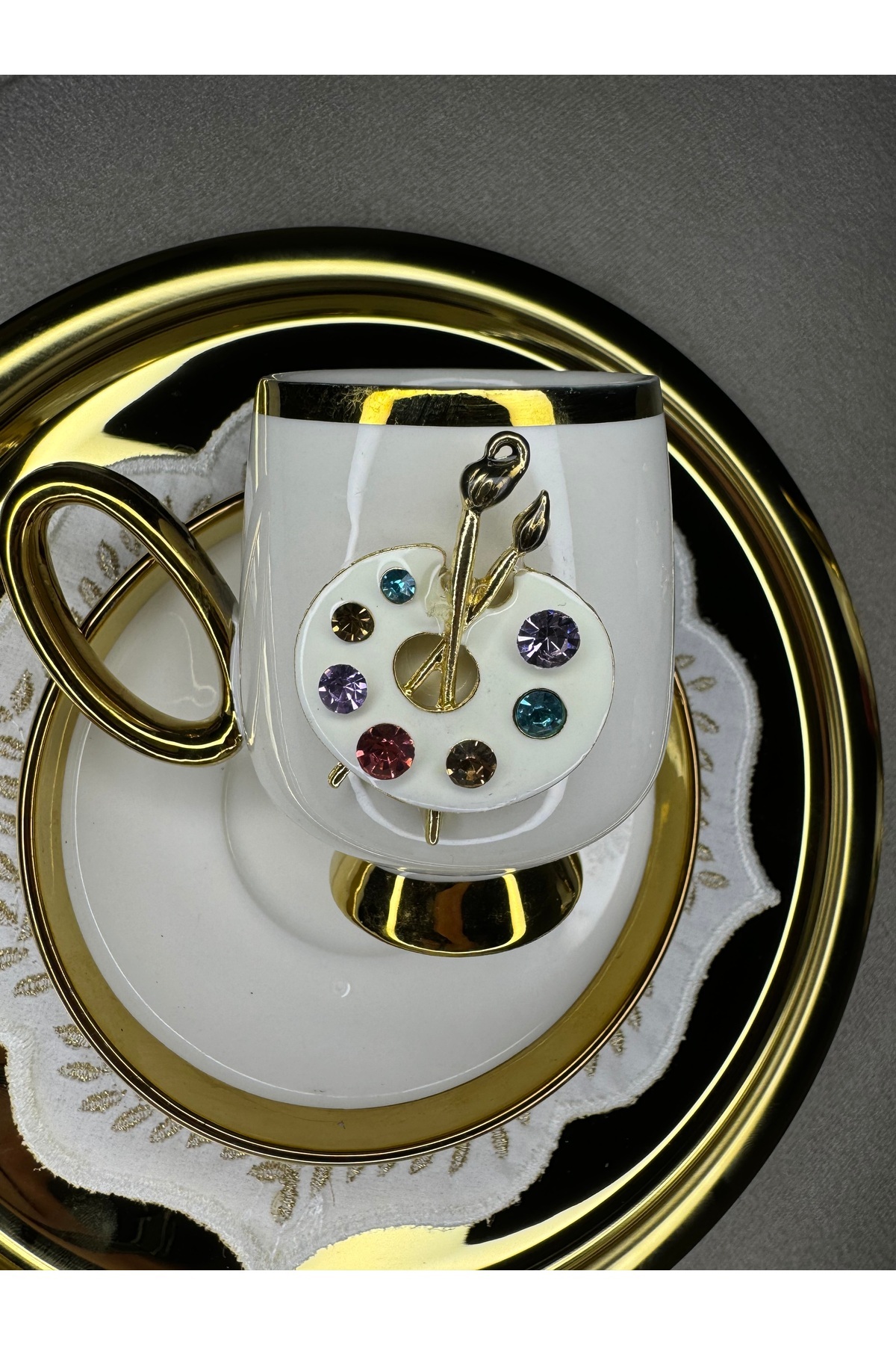 Özel Tasarım Boya Paleti Dekorlu Gold Detaylı Kahve Fincanı Özel Tasarım Boya Paleti Dekorlu Gold Detaylı Kahve Fincanı TSTMG-2229 تک سایز