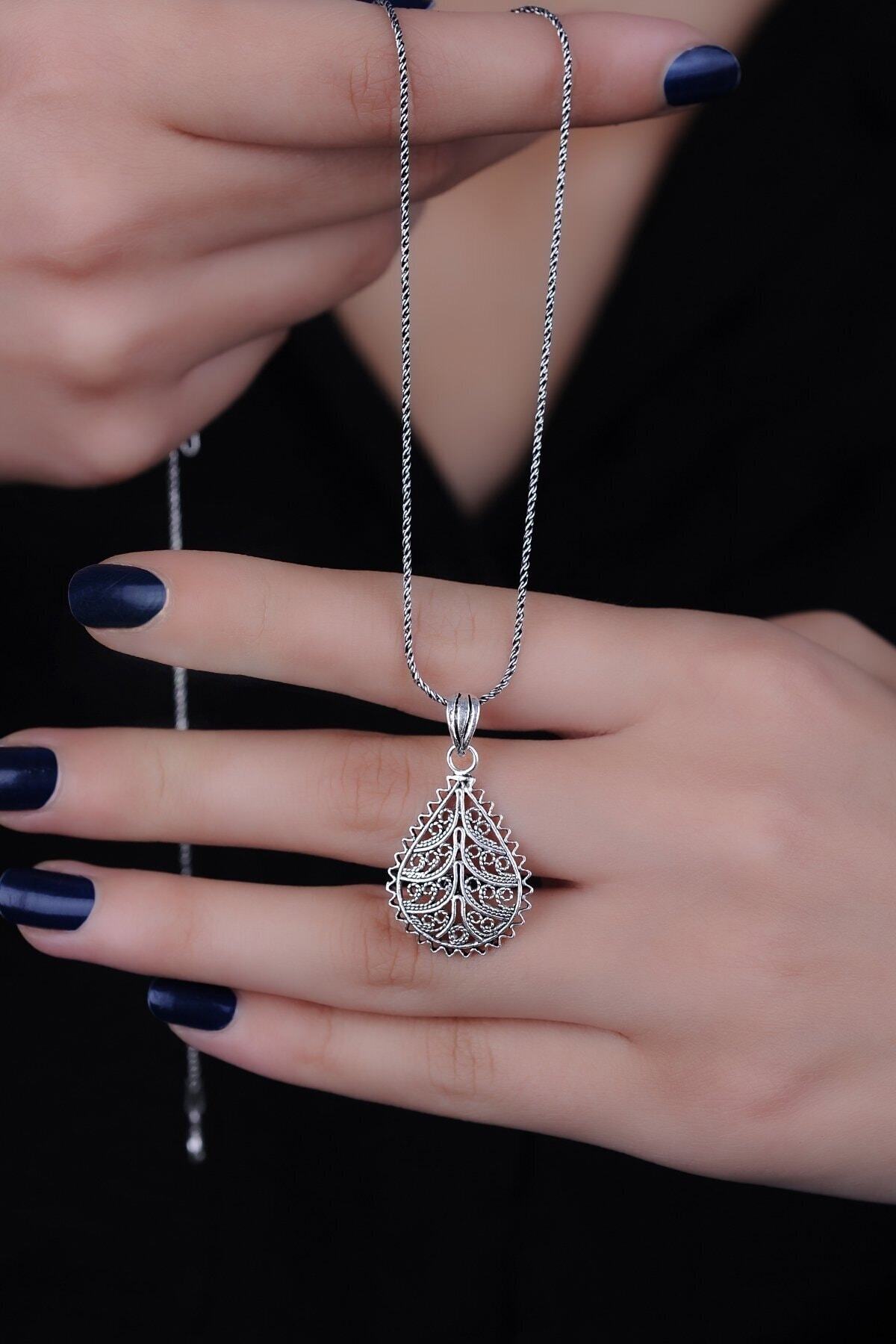 925 Ayar Telkari Gümüş Kolye – Zarif Çiçek Motifi, El İşçiliği 925 Ayar Telkari Gümüş Kolye – Zarif Çiçek Motifi, El İşçiliği Telkarikolyehayalet_m28 60 cm