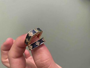 Gold Yoncalı Taşlı Lacivert Küpe Gold Yoncalı Taşlı Lacivert Küpe RBK316 تک سایز