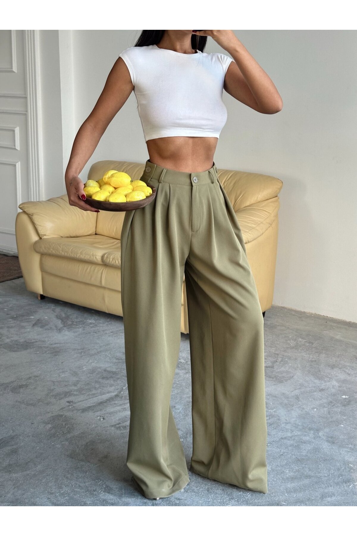Yandan Katlama Düğme Detay Palazzo Yandan Katlama Düğme Detay Palazzo MYD7460 L
