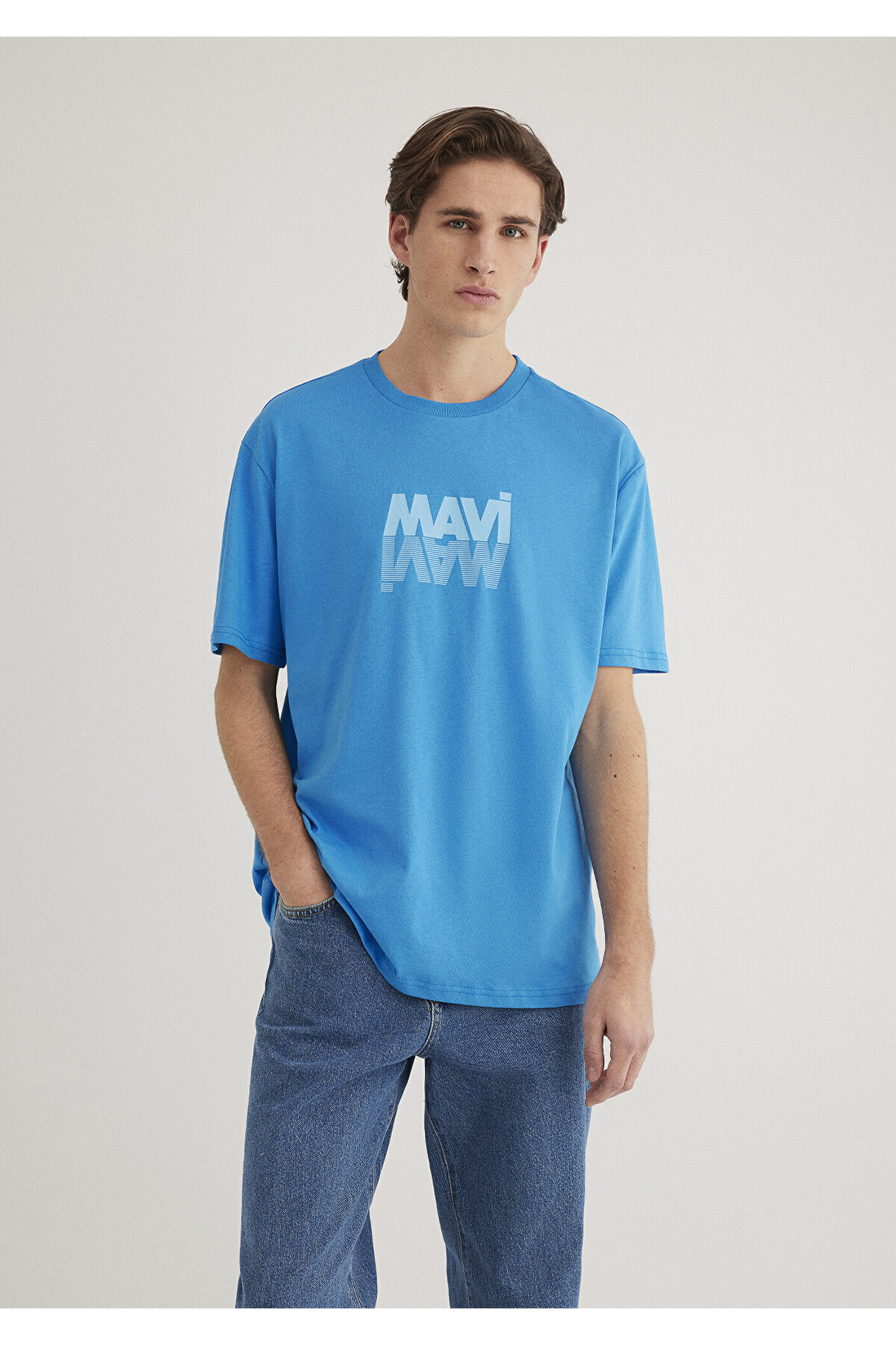 Baskılı Mavi Tişört Loose Fit / Bol Rahat Kesim 0612810-85440 Baskılı Mavi Tişört Loose Fit / Bol Rahat Kesim 0612810-85440 2XL