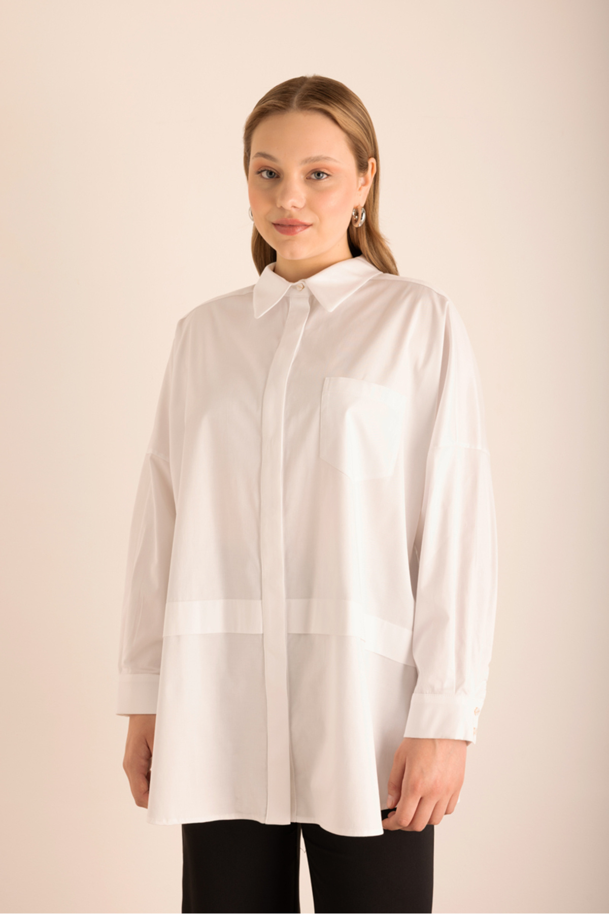 Omuz Bantları İşleme Detaylı Cotton Tunik Omuz Bantları İşleme Detaylı Cotton Tunik 25SS02771112 3XL