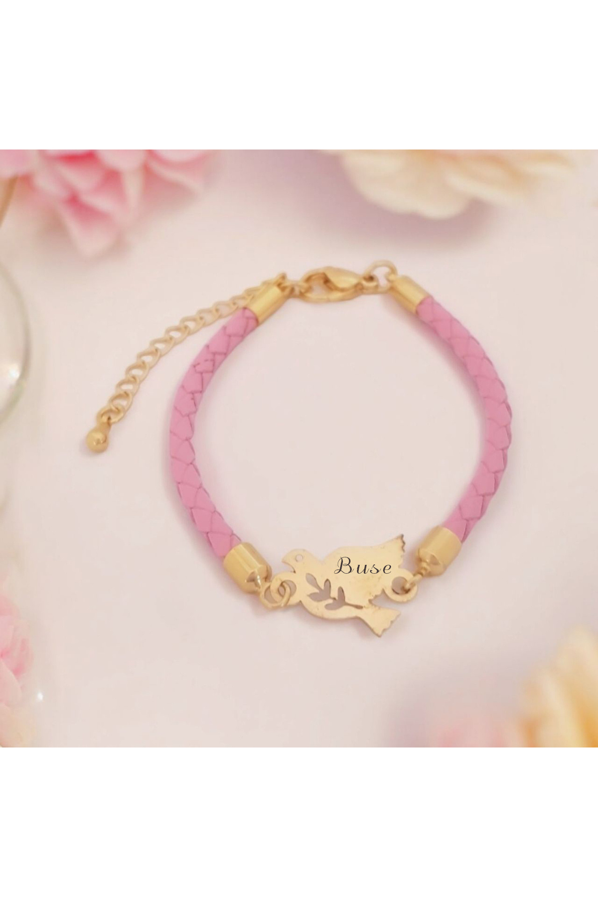 14 Ayar Plakalı Altın Doğal Derili Kuş Motifli Leyla İsmine Özel Hediye Bilekliği-444isim-pembe 14 Ayar Plakalı Altın Doğal Derili Kuş Motifli Leyla İsmine Özel Hediye Bilekliği-444isim-pembe isim-dapekual-pkbl-MO1 22 cm