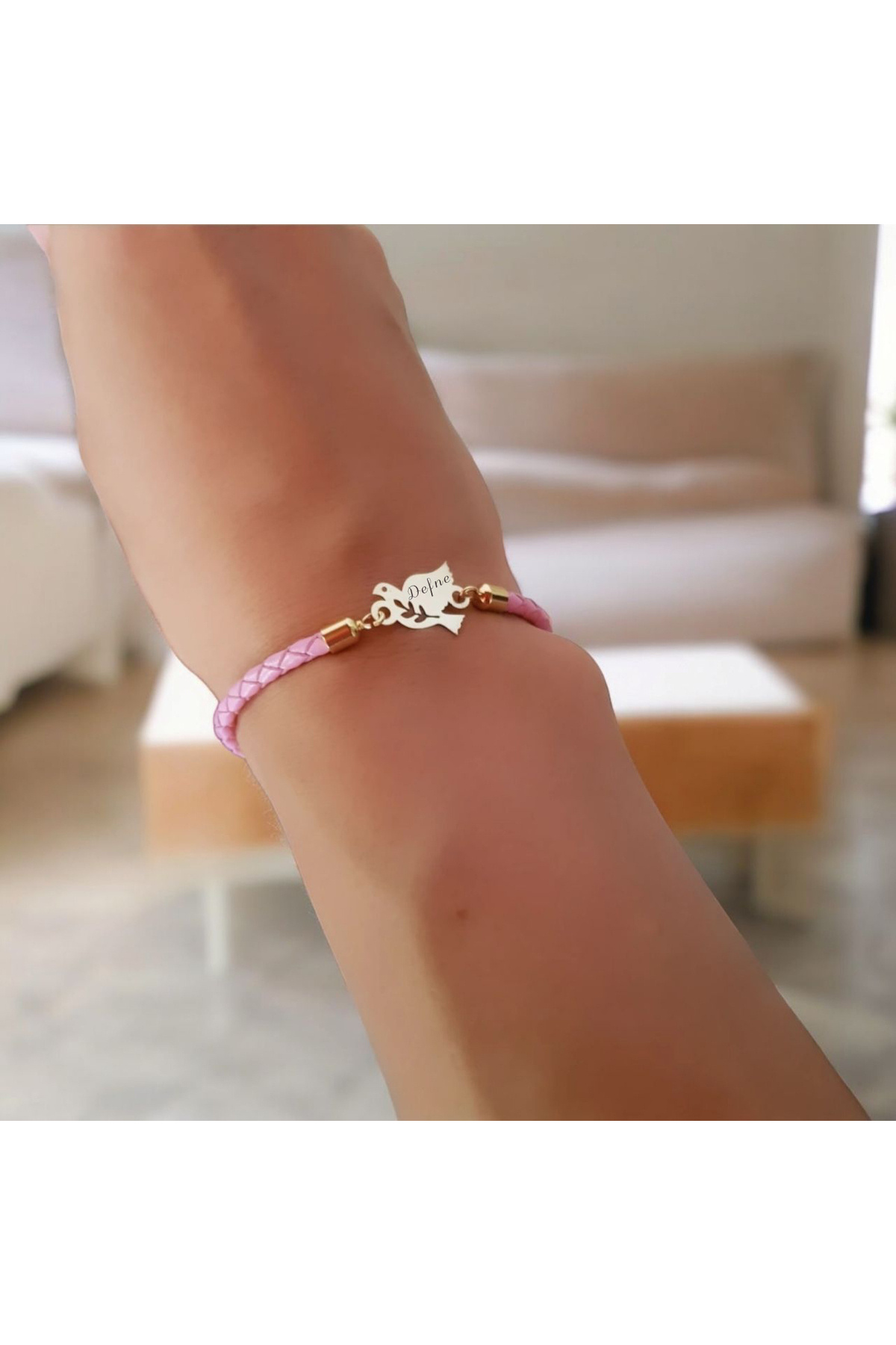 14 Ayar Plakalı Altın Doğal Derili Kuş Motifli Defne İsmine Özel Hediye Bilekliği-444isim-pembe 14 Ayar Plakalı Altın Doğal Derili Kuş Motifli Defne İsmine Özel Hediye Bilekliği-444isim-pembe isim-dapekual-pkbl-MO1 22 cm