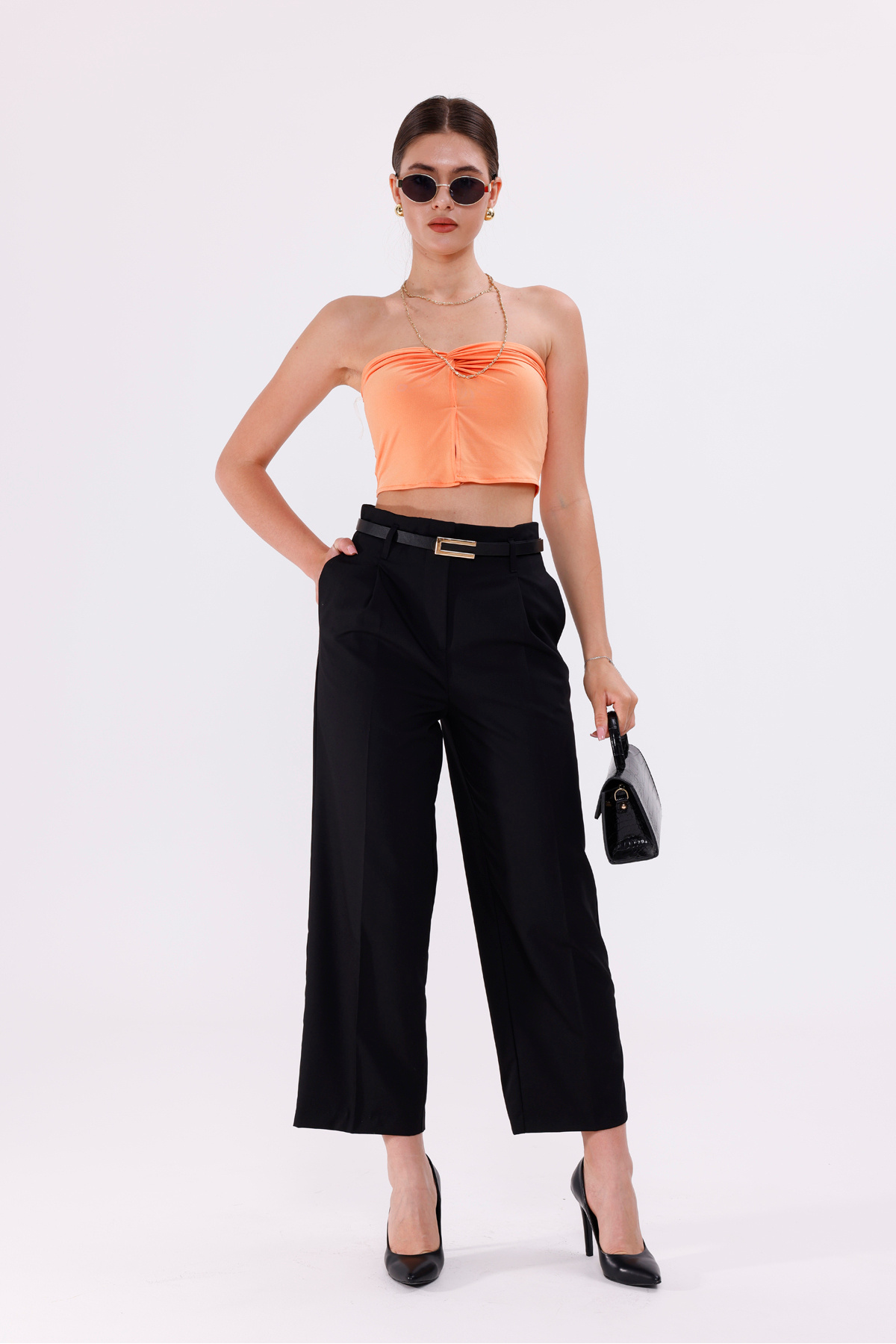 Önden Pileli Siyah Kadın Pantolon Önden Pileli Siyah Kadın Pantolon PSM627AC XL