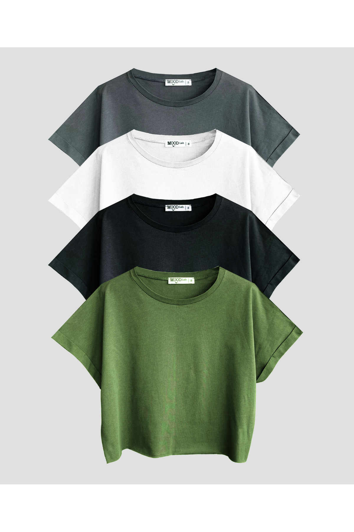 Crop Bisiklet Yaka Beyaz Pamuklu T-shirt Sportwear Crop Bisiklet Yaka Beyaz Pamuklu T-shirt Sportwear ML10067WY XL