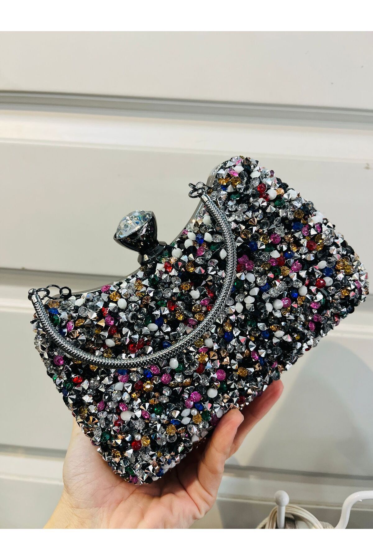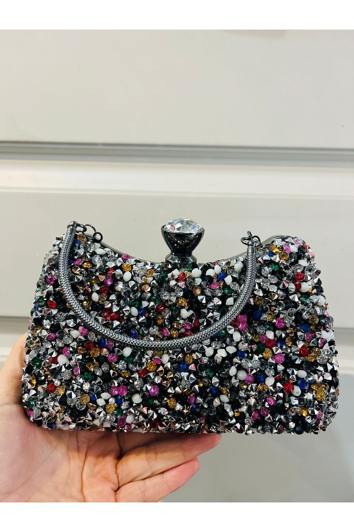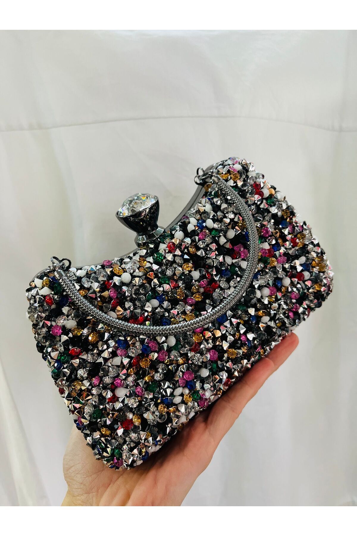 Kadın Burslu Renkli El Ve Çapraz Zincir Uzun Askılı Kristal Taşlı Siyah Abiye Çanta Kadın Burslu Renkli El Ve Çapraz Zincir Uzun Askılı Kristal Taşlı Siyah Abiye Çanta MENAABİYE-007 تک سایز