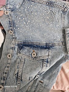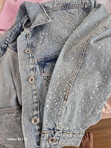Cepli Taş Detaylı Düğmeli Denim Ceket Cepli Taş Detaylı Düğmeli Denim Ceket 5SAL50009MDLGT-1013002 L