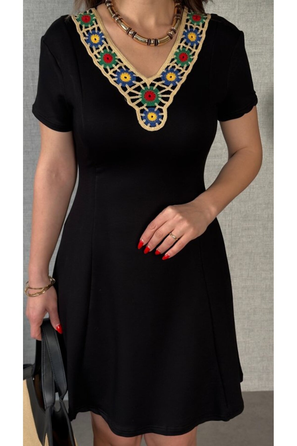 Kadın Penye Kumaş Çiçek Desenli Nakışlı Elbise Kadın Penye Kumaş Çiçek Desenli Nakışlı Elbise SNA-68109a7e69f9f 3XL