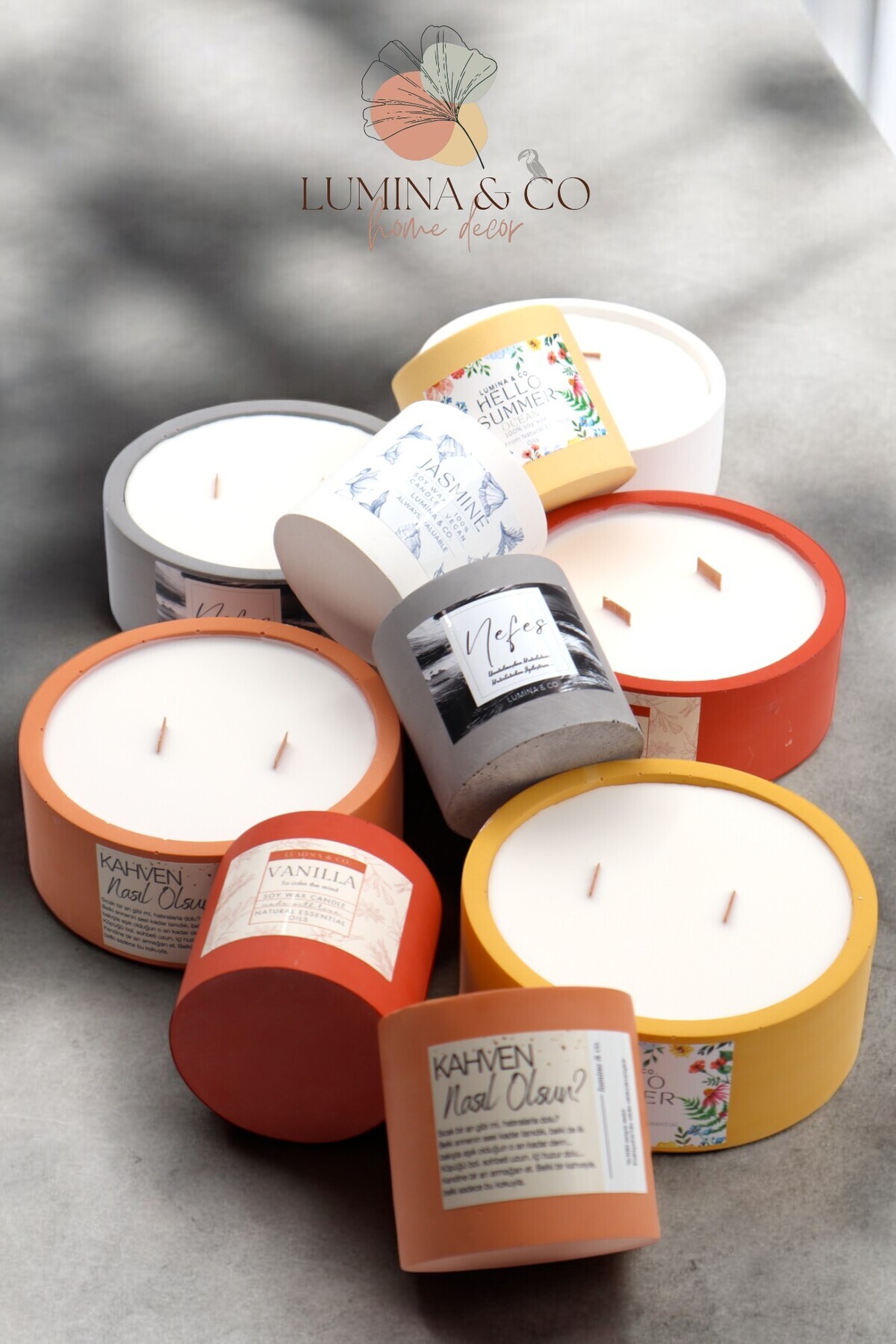 Hello Summer Etiketli - Okyanus Kokulu Beton Mum Hello Summer Etiketli - Okyanus Kokulu Beton Mum LUMİNA114 تک سایز