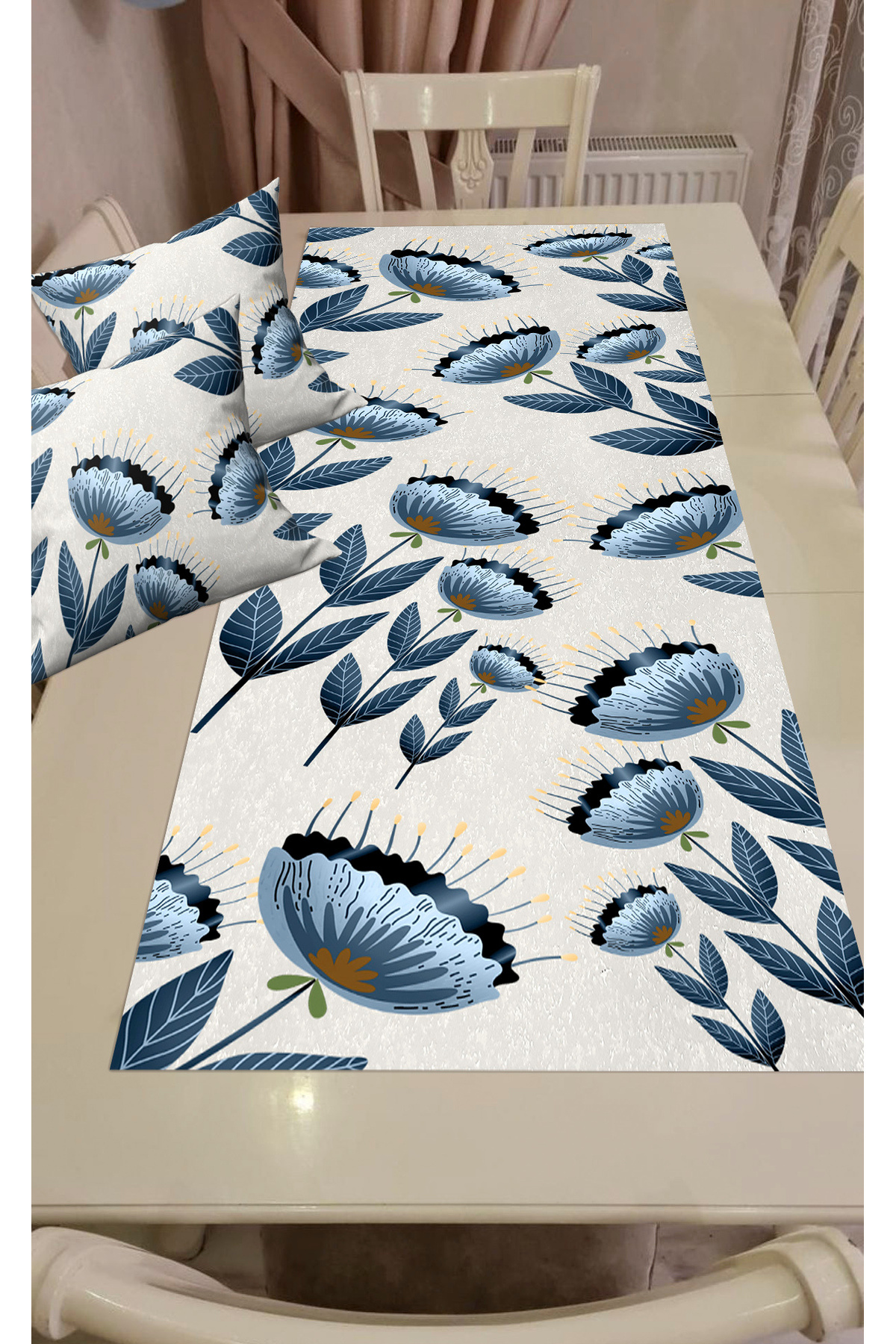 Mavi, Pamuklu Kumaş, Balkon, Bahçe, Mutfak Runner Ve 2'li Kırlent Kılıf Set Mavi, Pamuklu Kumaş, Balkon, Bahçe, Mutfak Runner Ve 2'li Kırlent Kılıf Set ARRK348 تک سایز
