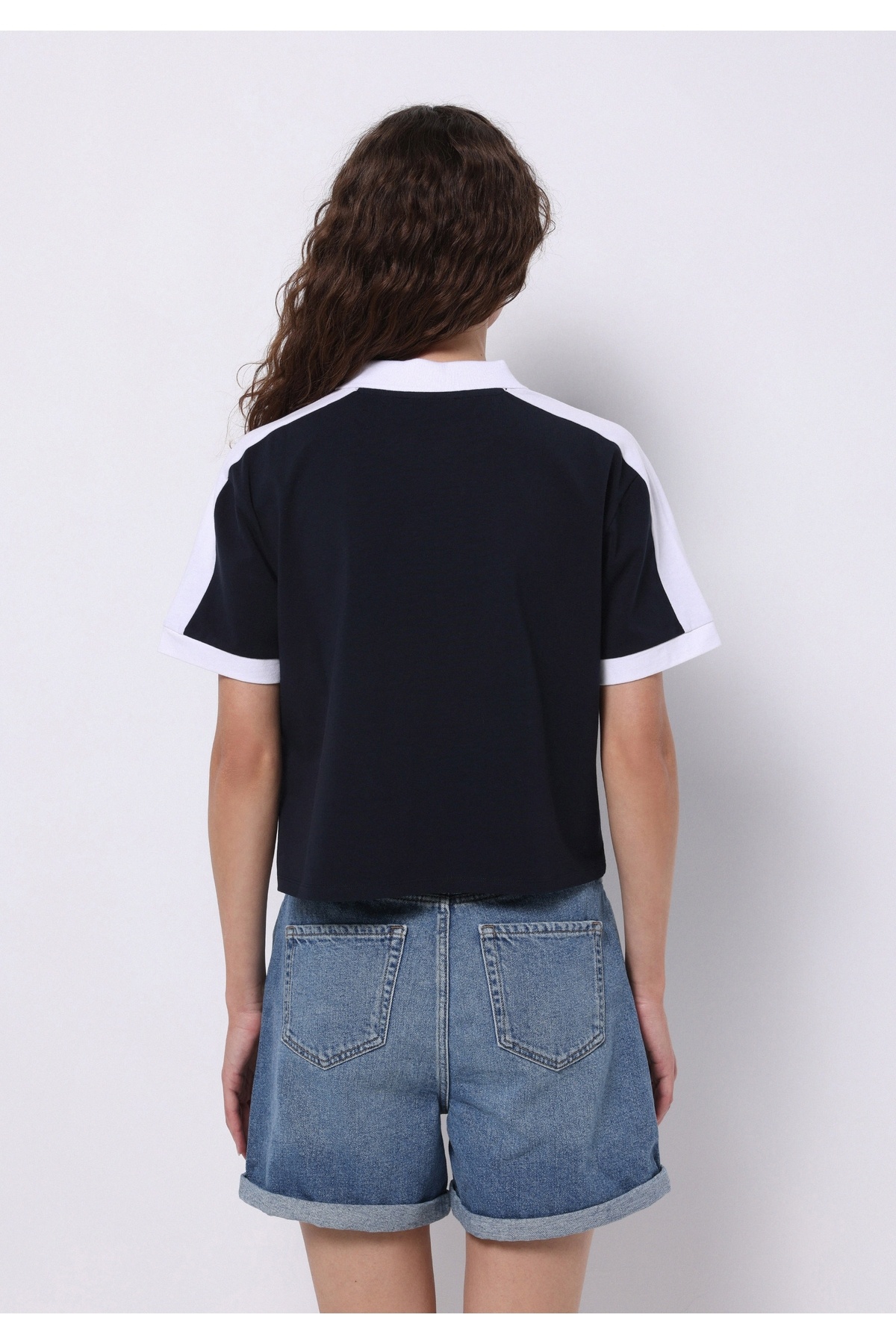 Regular Fit Polo Yaka Düz Kadın Lacivert Kısa Kol Tişört Regular Fit Polo Yaka Düz Kadın Lacivert Kısa Kol Tişört CL1074591_Q1.V1 L