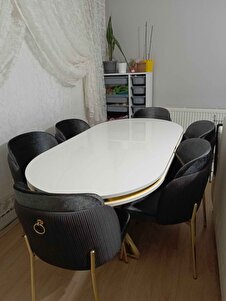 6 Kişilik Arya Gold Line BabyFace Kumaş Mdf Lak Panel Beyaz Masa Takımı Modern Ve Şık 6 Kişilik Arya Gold Line BabyFace Kumaş Mdf Lak Panel Beyaz Masa Takımı Modern Ve Şık beyaz6 تک سایز