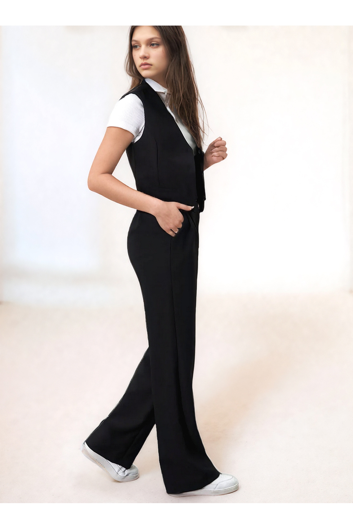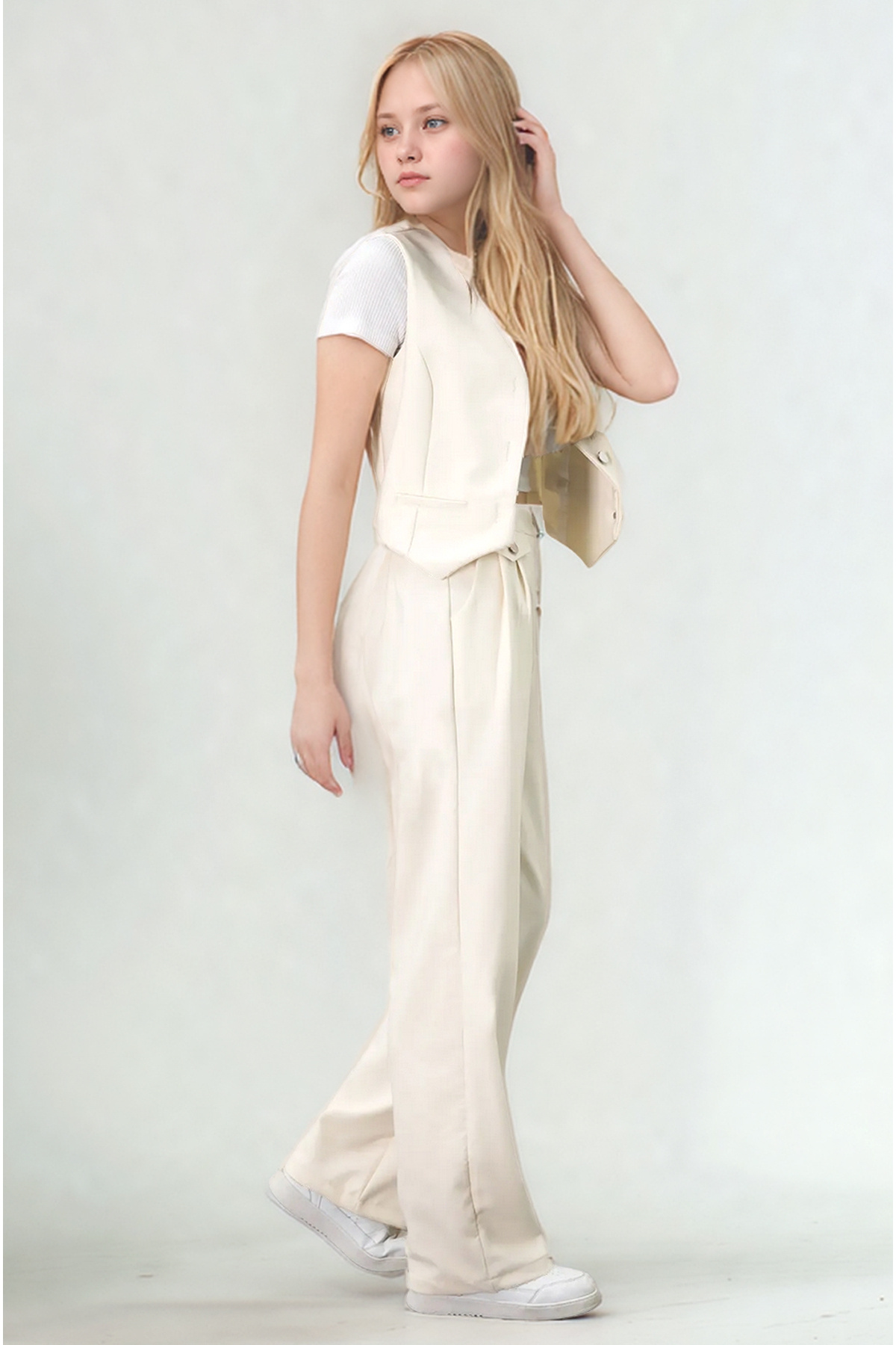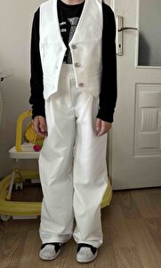 Ekru V Yaka Düğmeli Yelekli Geniş Paça Pantolonlu Kız Çocuk 2li Takım 20725 Ekru V Yaka Düğmeli Yelekli Geniş Paça Pantolonlu Kız Çocuk 2li Takım 20725 GRPCM00020722 12-13 Yaş