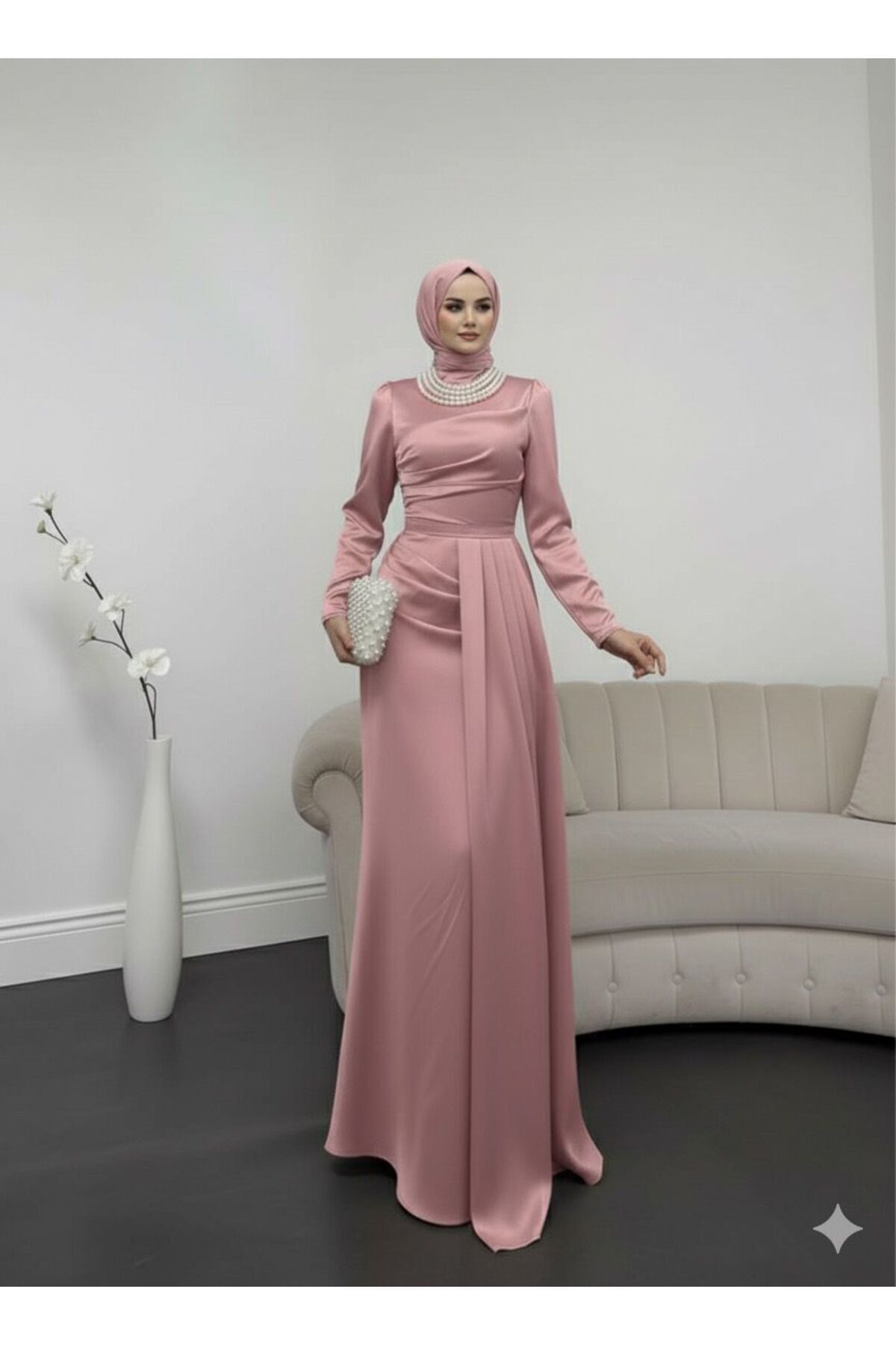 Pelerinli Taşlı Şifon Abiye Pelerinli Taşlı Şifon Abiye 25Y14630MT 46