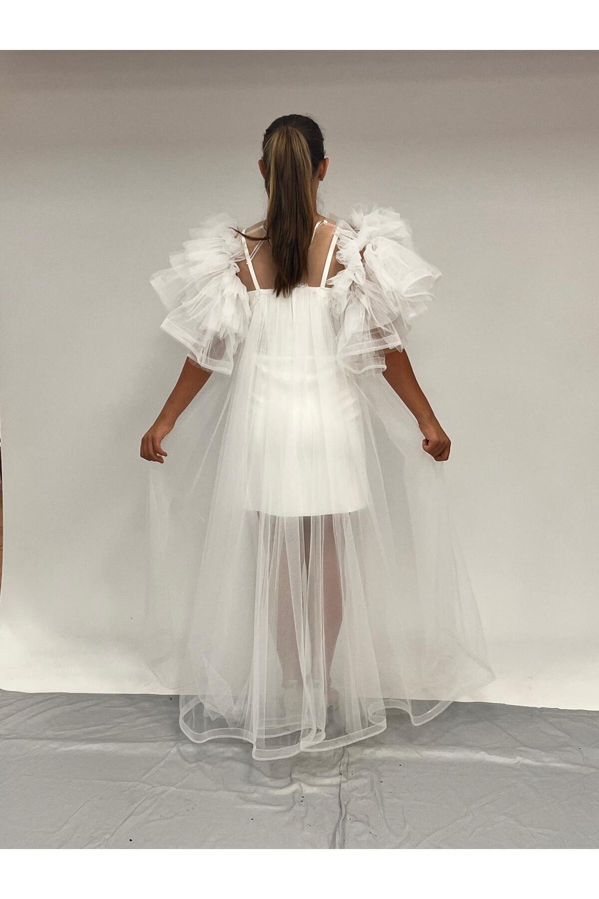 Kız Çocuk Abiye Krem Krep Kumaş Askılı Taş Şerit İşlemeli Kolları Farbalı Çıkabilen Pelerin Detayl Kız Çocuk Abiye Krem Krep Kumaş Askılı Taş Şerit İşlemeli Kolları Farbalı Çıkabilen Pelerin Detayl 0007-855-krem 15 YAŞ