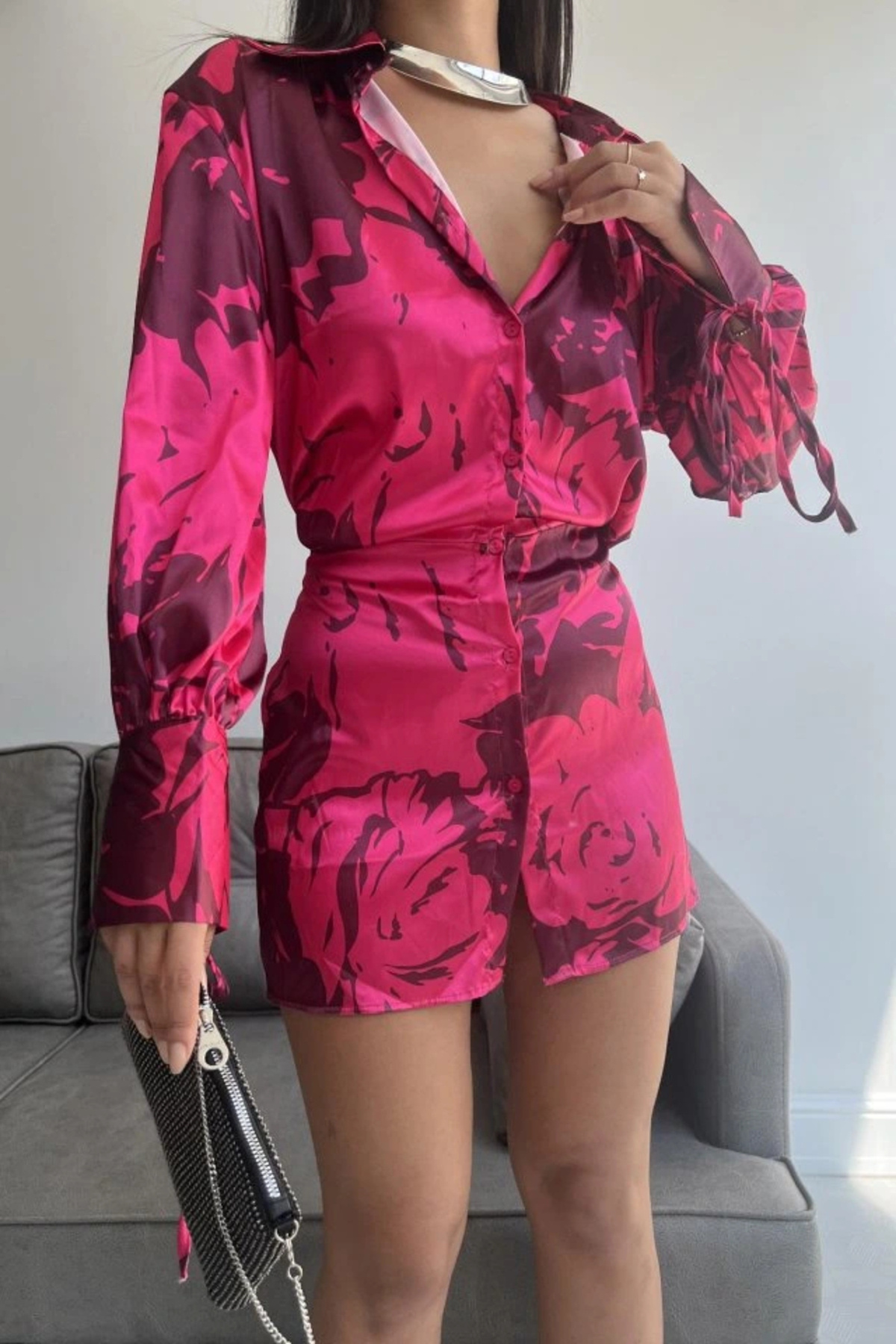 Vatkalı Manşet Detaylı Gömlek Elbise - Fuşya Vatkalı Manşet Detaylı Gömlek Elbise - Fuşya AİSHA-311768f7 L/S