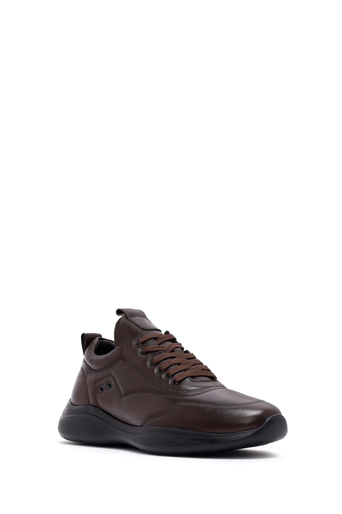 Erkek Kahverengi Bağcıklı Deri Sneaker 25SFD642318 Erkek Kahverengi Bağcıklı Deri Sneaker 25SFD642318 44