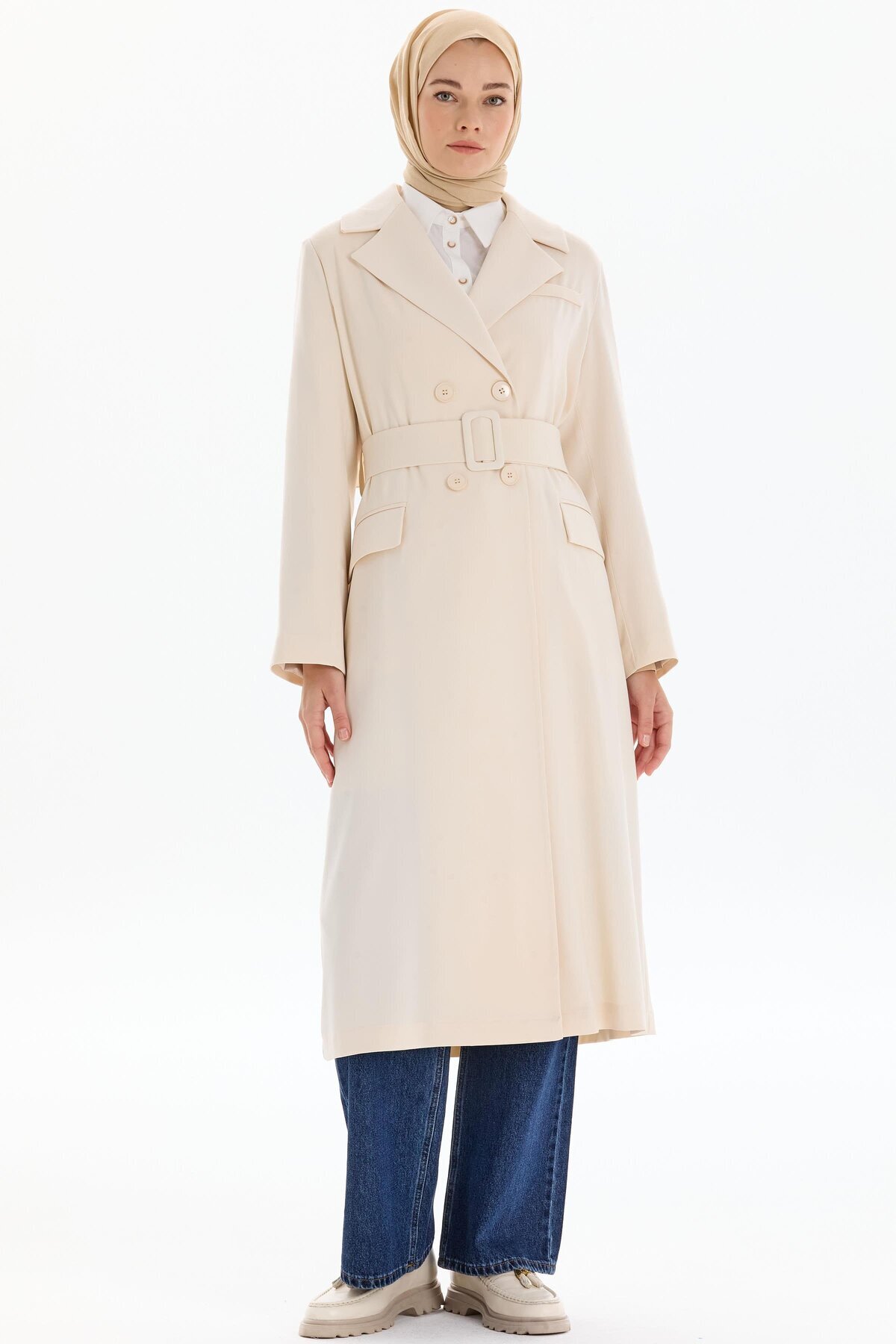 Çizgili Mini Ceket - Bej Çizgili Mini Ceket - Bej 251CK1089TB.01-02 42