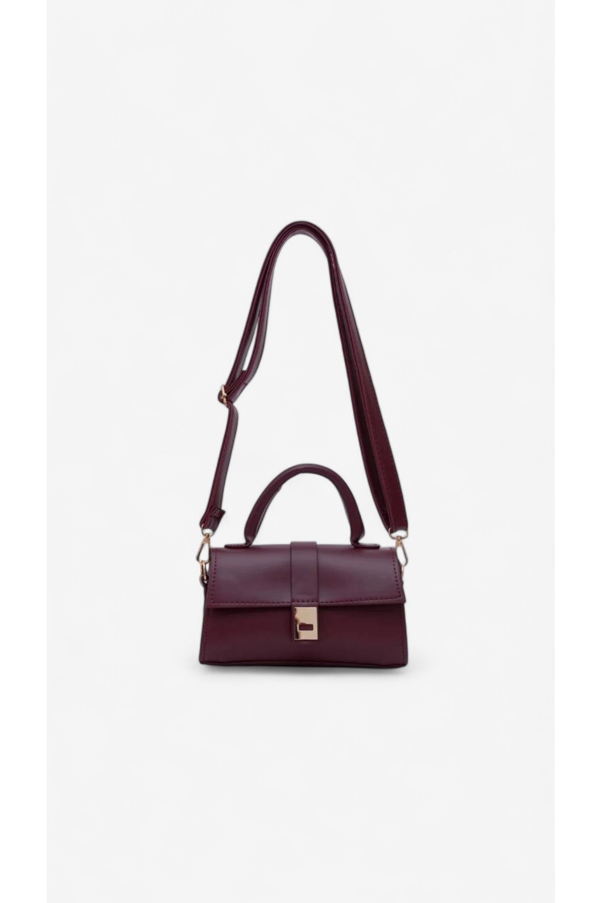 Kadın Luna Bordo Tokalı Şık Deri Görünümlü Minimal El ve Omuz Çantası Kadın Luna Bordo Tokalı Şık Deri Görünümlü Minimal El ve Omuz Çantası PAU01 تک سایز