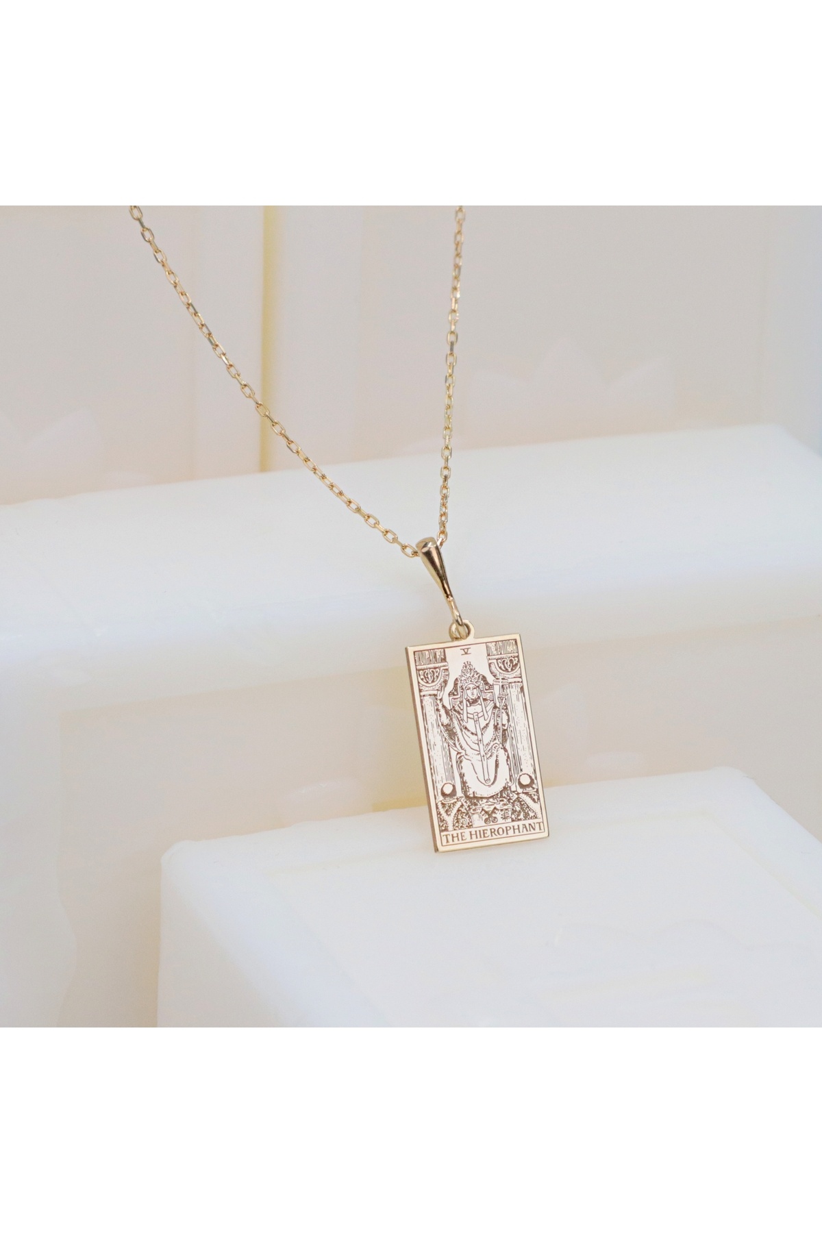 Başrahip (The Hierophant) Tarot Kartı Kolyesi 925 Ayar Gümüş 18K Altın Kaplama Başrahip (The Hierophant) Tarot Kartı Kolyesi 925 Ayar Gümüş 18K Altın Kaplama A1000-129 55 cm