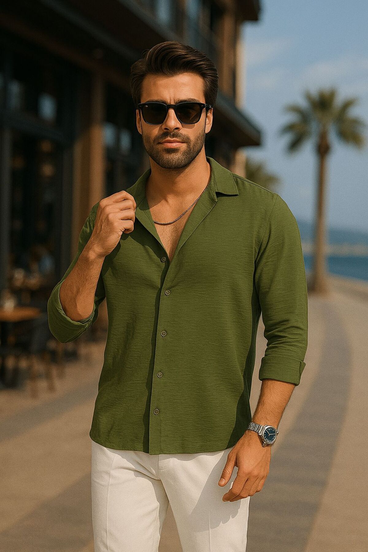 Erkek Haki Keten Dokulu Oversize Bol Kalıp Gömlek Erkek Haki Keten Dokulu Oversize Bol Kalıp Gömlek SKY1933