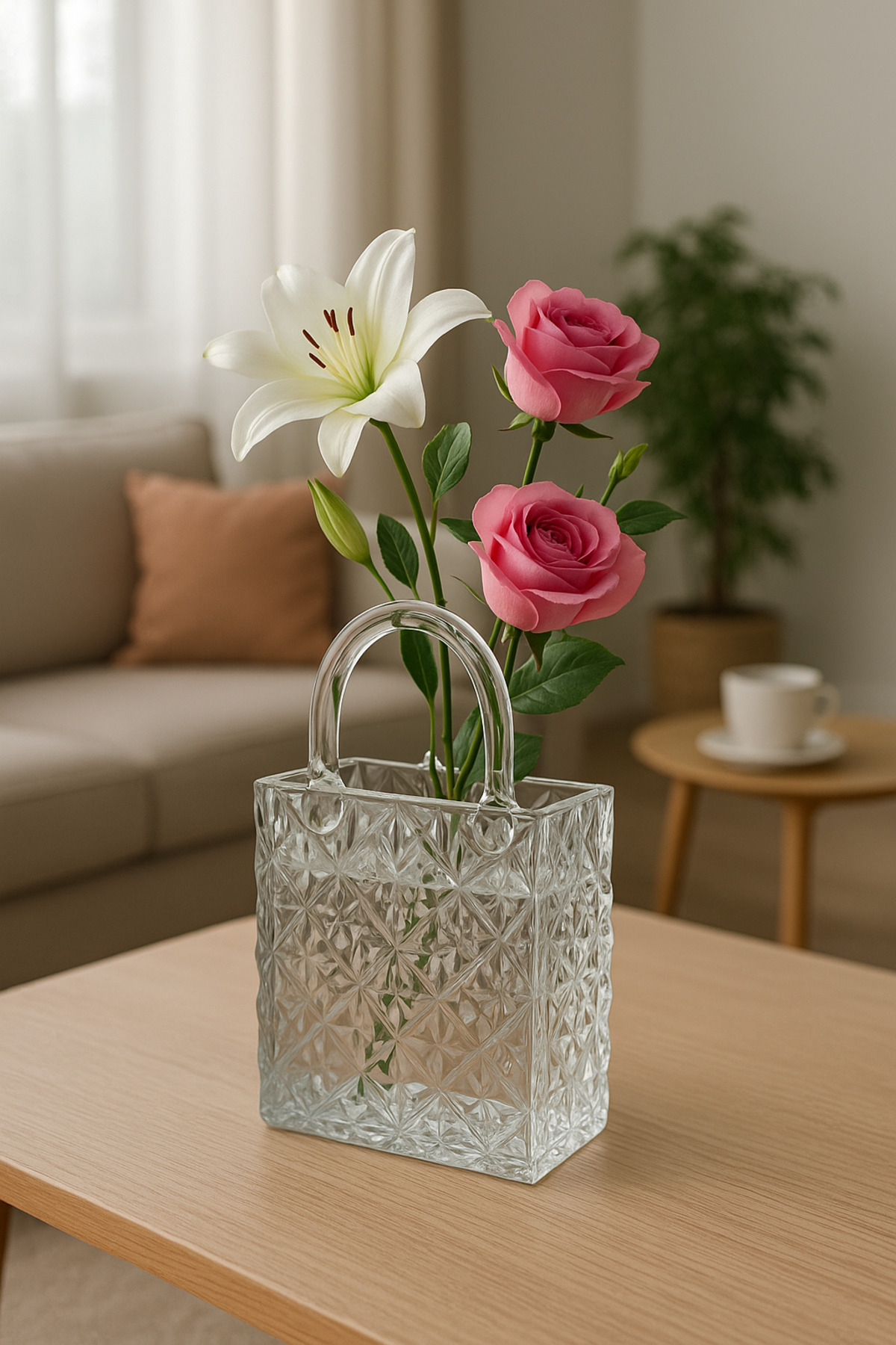 ÇANTALI CAM VAZO FÜME KÜÇÜK ÇANTALI CAM VAZO FÜME KÜÇÜK FRK2235A تک سایز