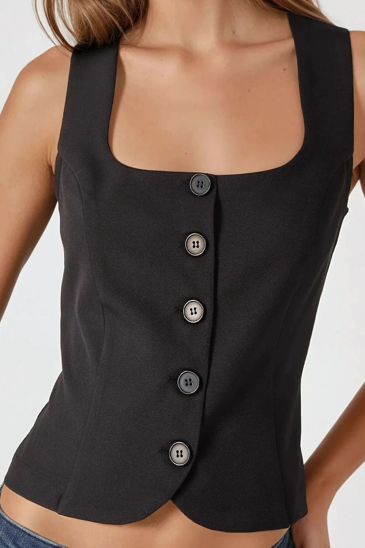 Dar Kesim Kare Yaka Yelek Dar Kesim Kare Yaka Yelek M73BP49Q XL