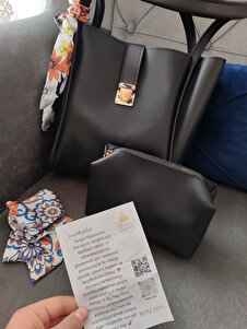 Büyük Boy Çanta Gold Detaylı + Hediye Fular Büyük Boy Çanta Gold Detaylı + Hediye Fular nataliçanta تک سایز