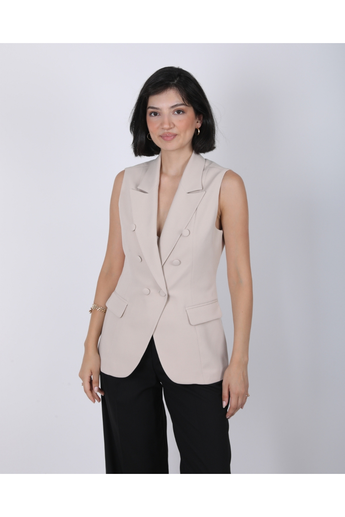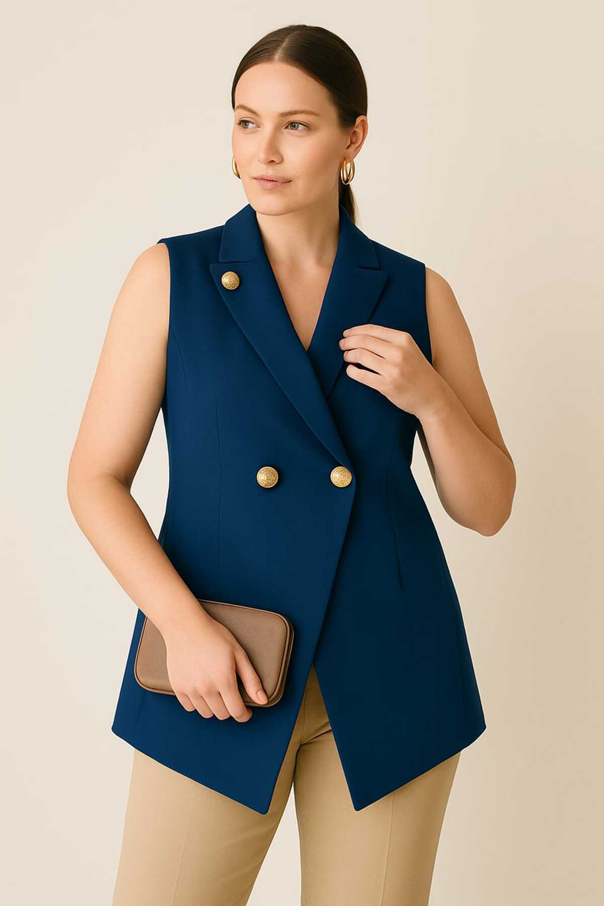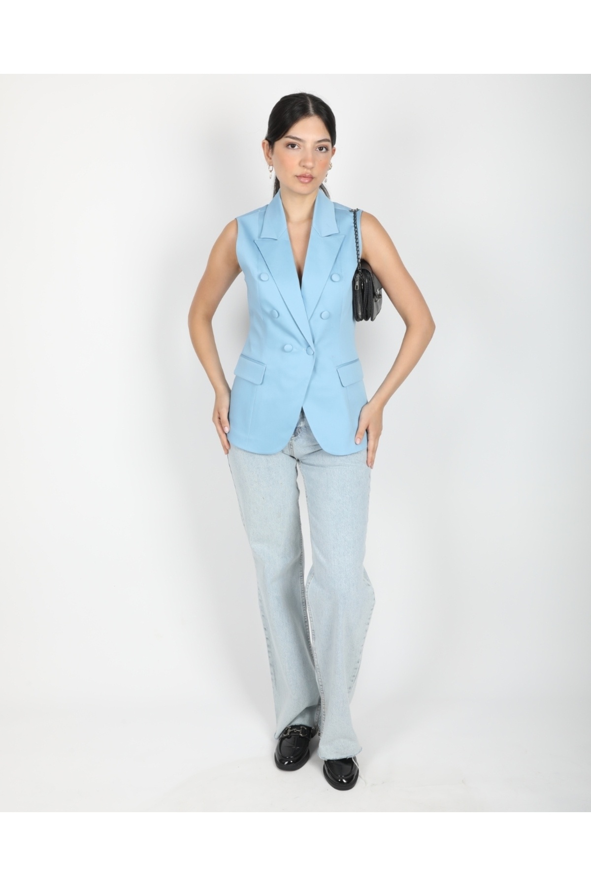 Kadın Bebe Mavi Düğme Detaylı Blazer Yelek Kadın Bebe Mavi Düğme Detaylı Blazer Yelek YLK03 XL