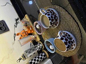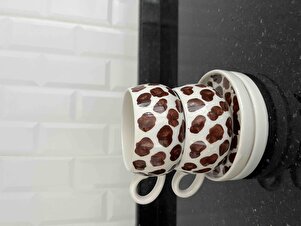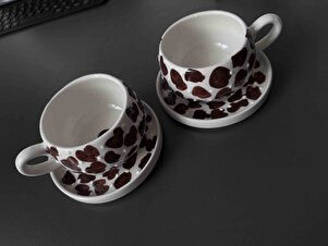 Beren kahverengi Dalmaçyalı 2li tabaklı kupa seti el dekoru Beren kahverengi Dalmaçyalı 2li tabaklı kupa seti el dekoru Beren kahve Dalmaçyalı 2li tabaklı set تک سایز