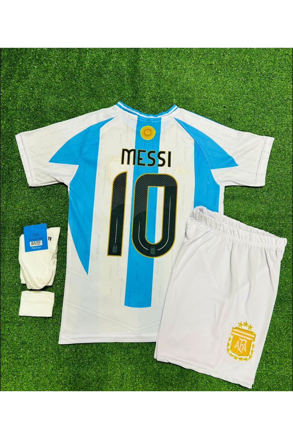 Arjantin 2024/25 Sezon Lionel Messi Çocuk Forması Şort Çorap Bileklik 4'lü Seti Arjantin 2024/25 Sezon Lionel Messi Çocuk Forması Şort Çorap Bileklik 4'lü Seti AJR5562 13-14 Yaş