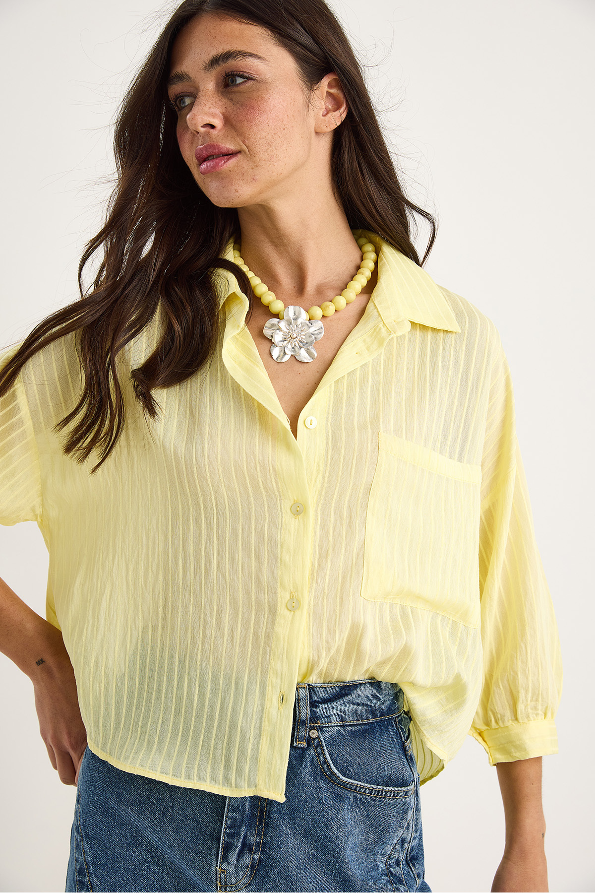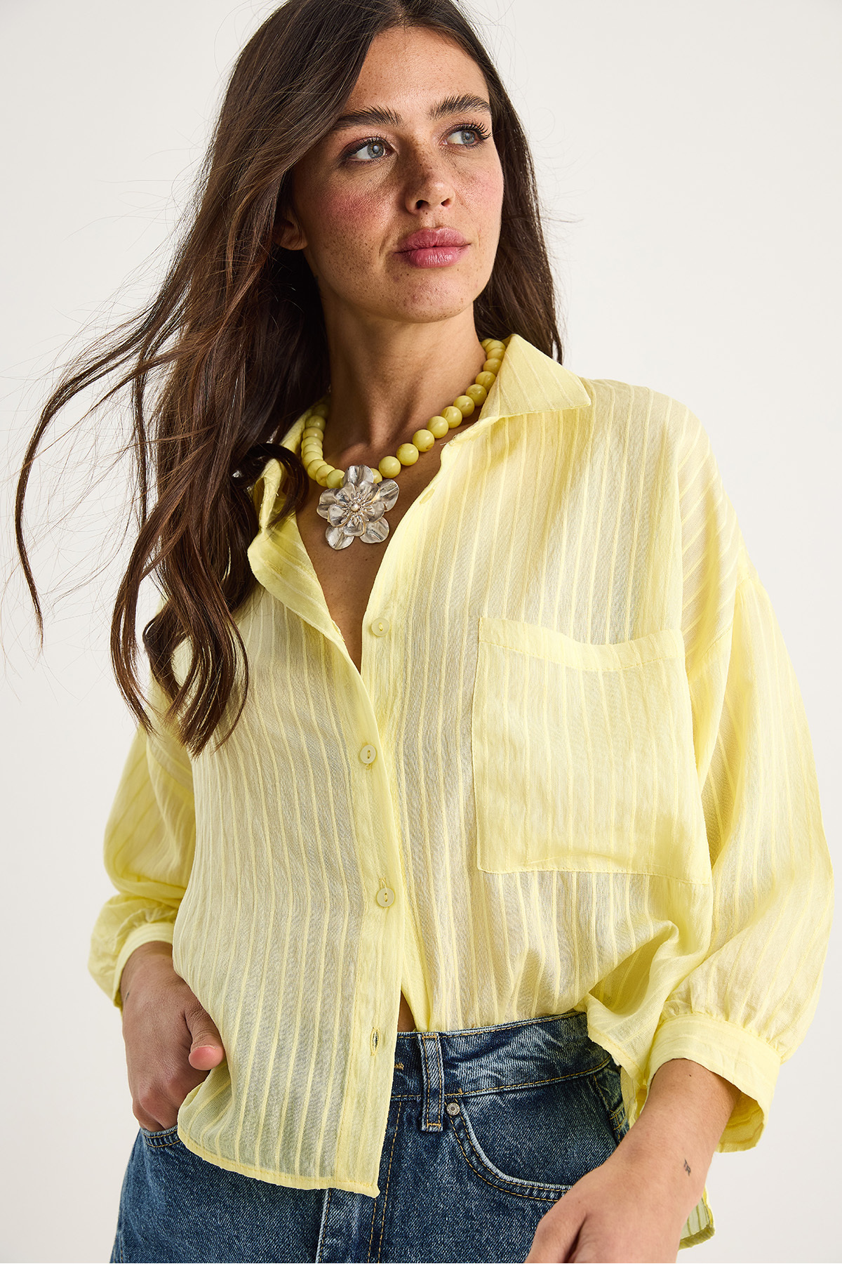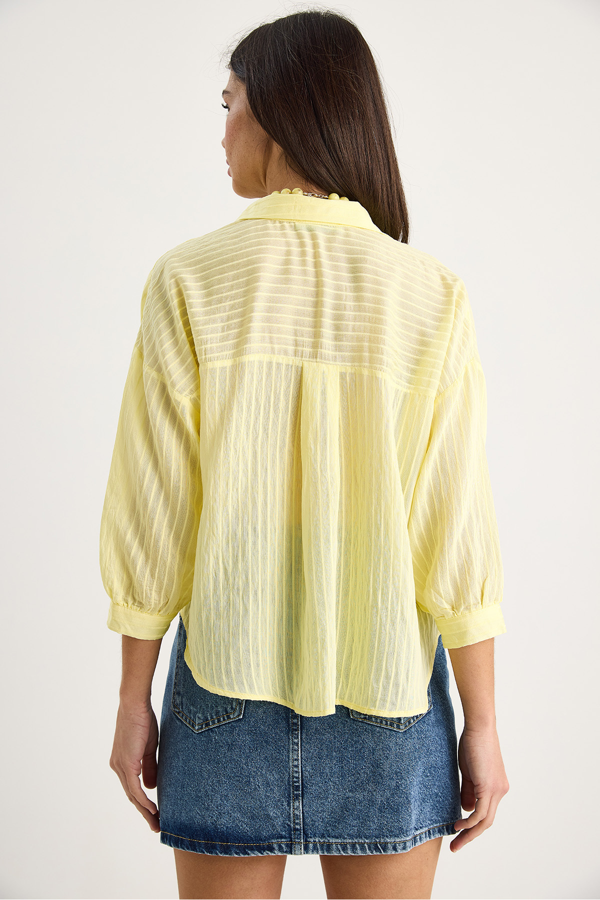 Kadın Kendinden Çizgili Yarım Kollu Tek Cep Detaylı Gömlek 2108 60283328 Kadın Kendinden Çizgili Yarım Kollu Tek Cep Detaylı Gömlek 2108 60283328 L