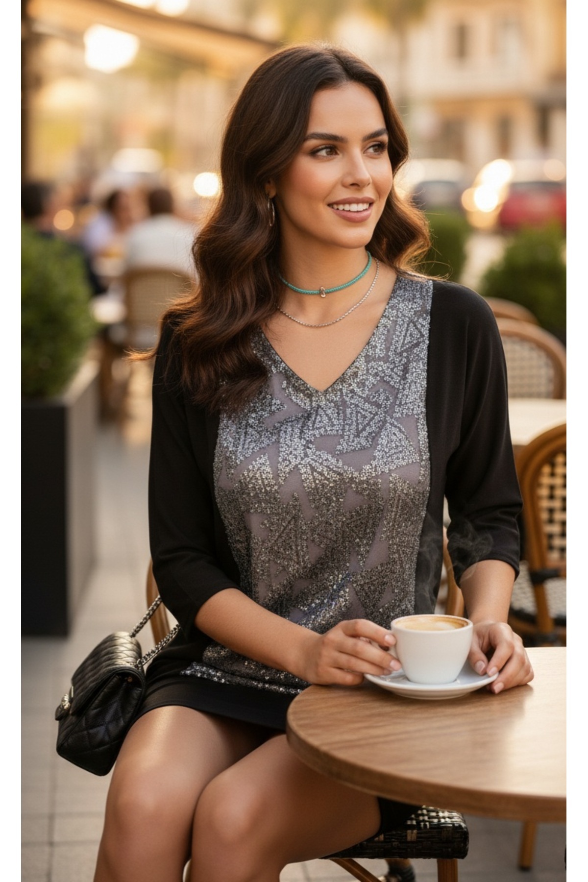 Gri Güpür Detaylı Şifon Bluz Gri Güpür Detaylı Şifon Bluz FZB5005 48