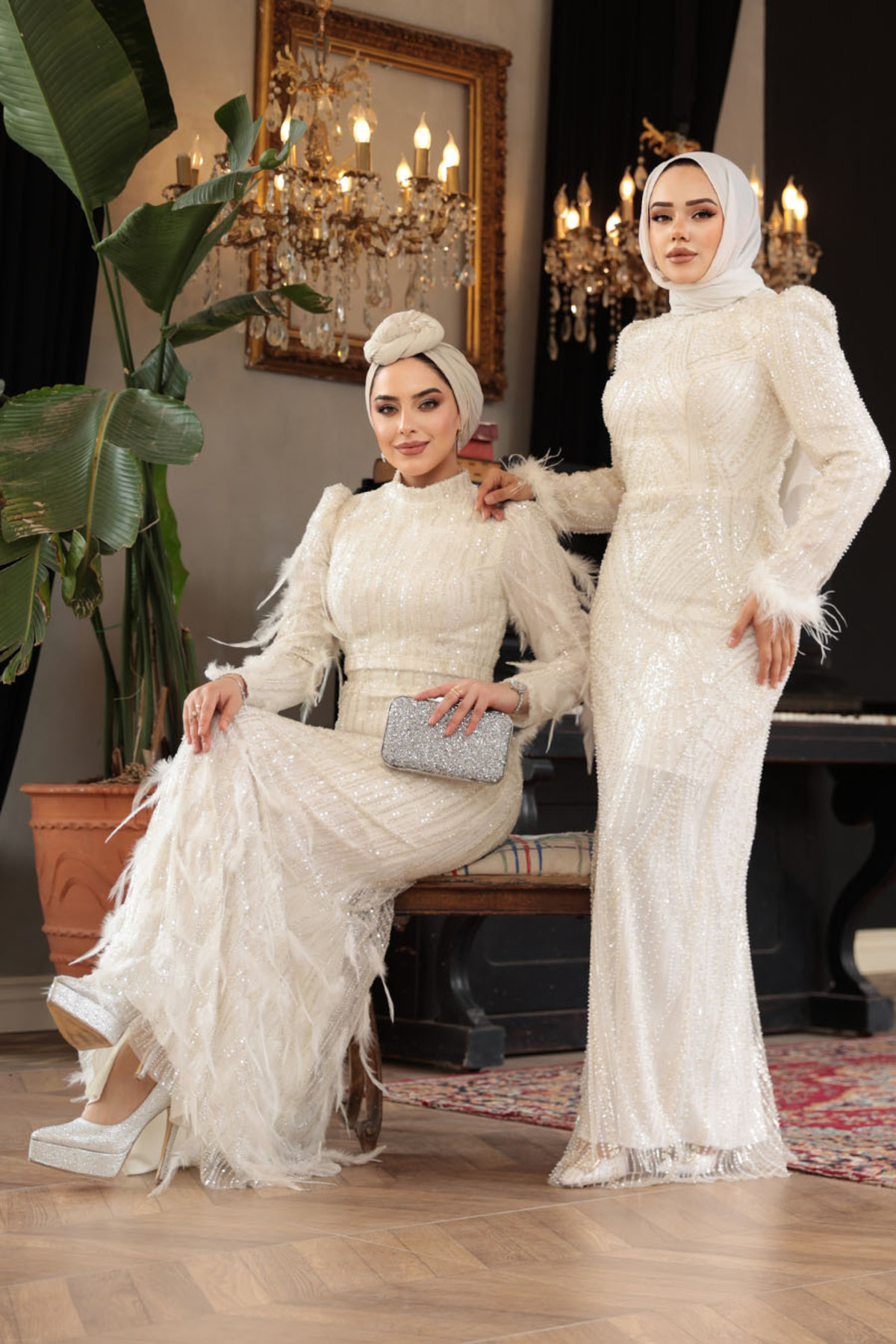 Payet Boncuk İşlemeli Ekru Tesettür Abiye Elbise 51001E Payet Boncuk İşlemeli Ekru Tesettür Abiye Elbise 51001E OZD-51001 46