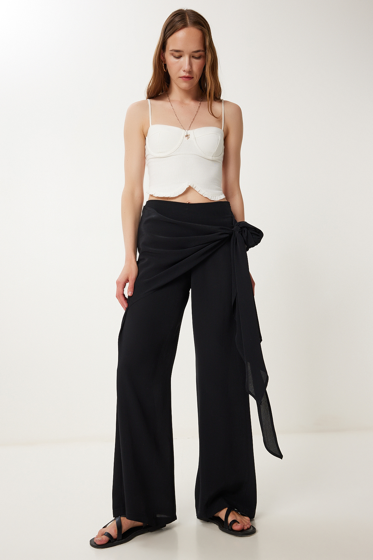 Kadın Siyah Krem Zebra Desenli Saten Yüzeyli Dökümlü Pantolon CR00492 Kadın Siyah Krem Zebra Desenli Saten Yüzeyli Dökümlü Pantolon CR00492 40