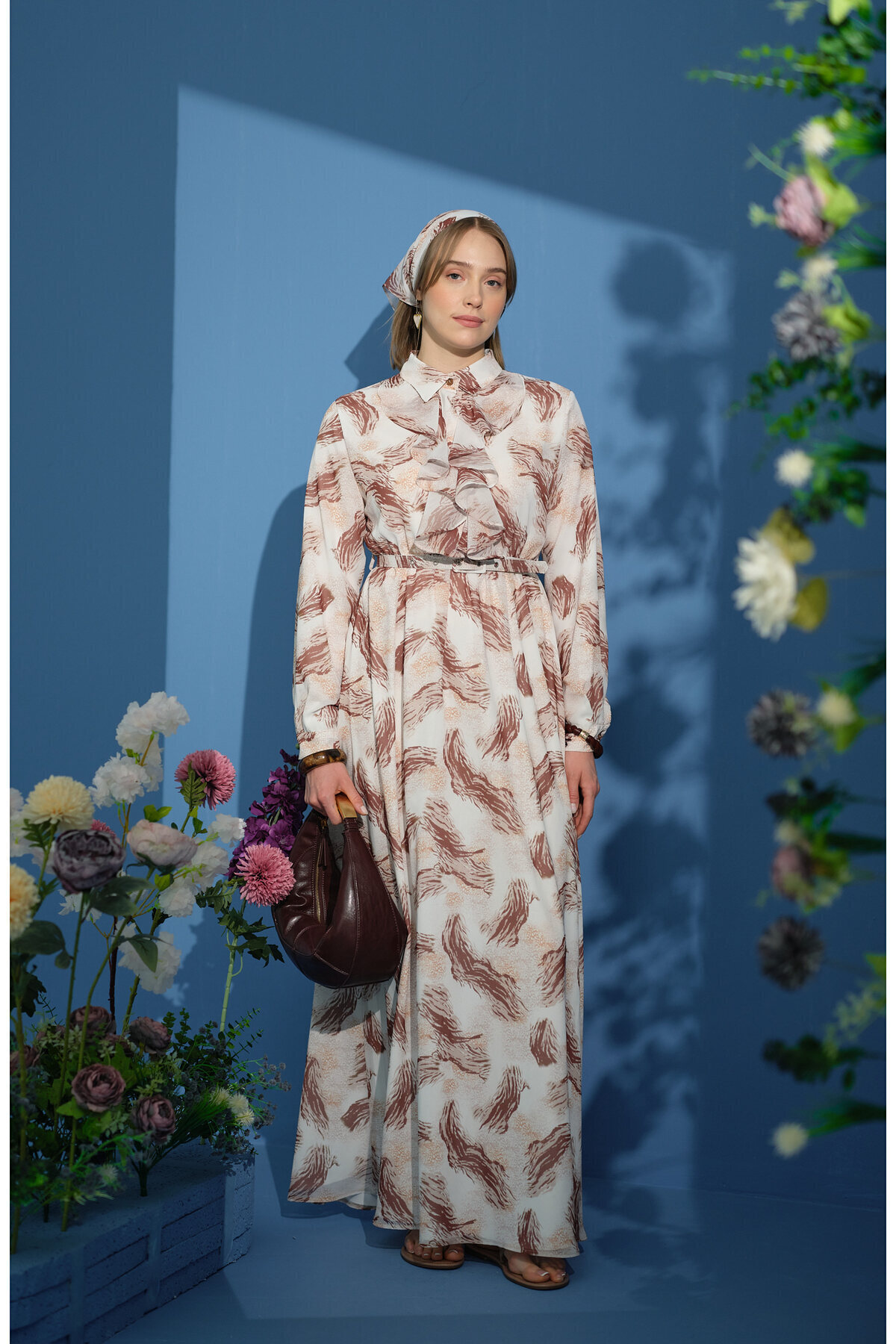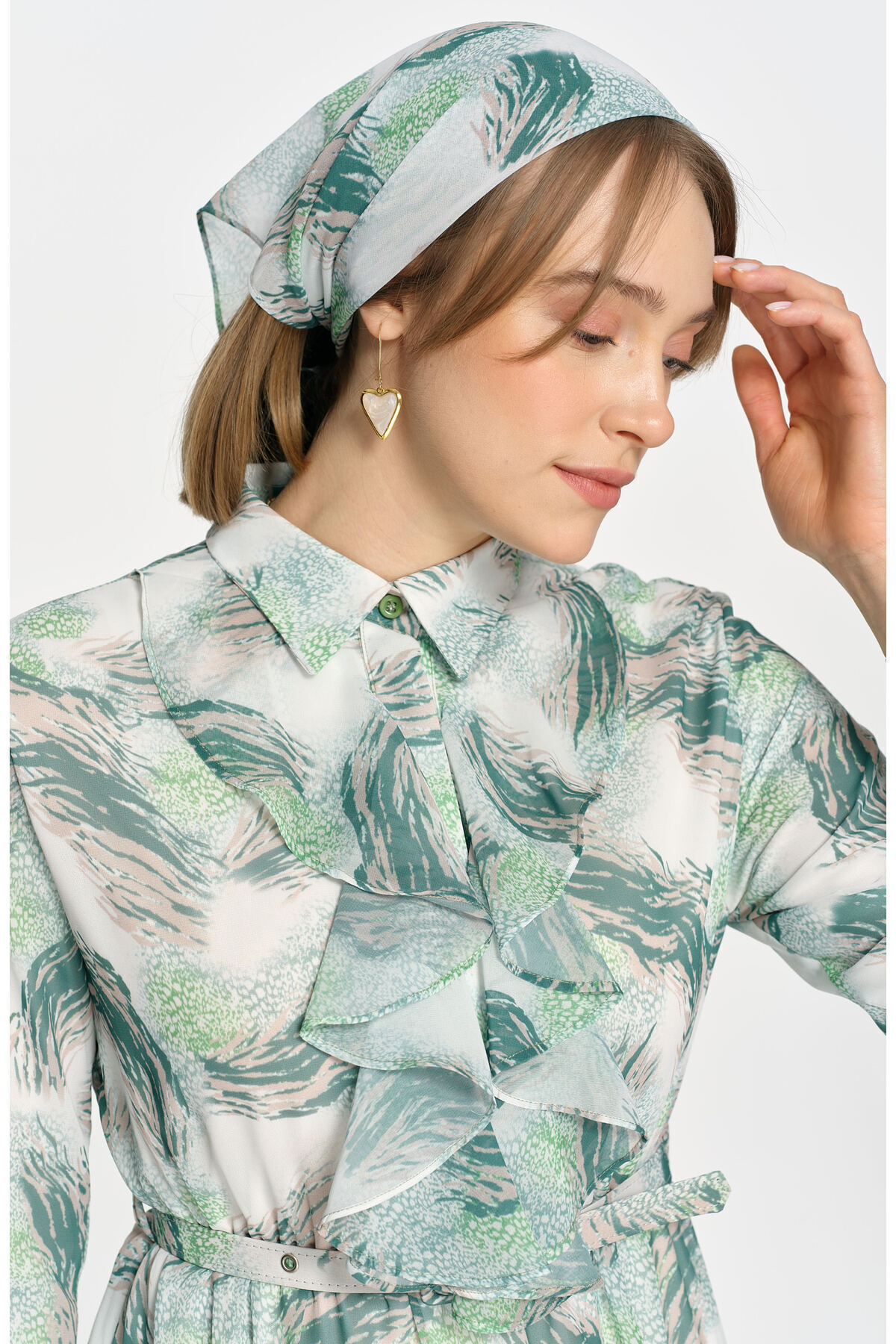 Animal Desen Volanlı Şifon Yeşil Elbise Animal Desen Volanlı Şifon Yeşil Elbise FA2025BS-6103 XL